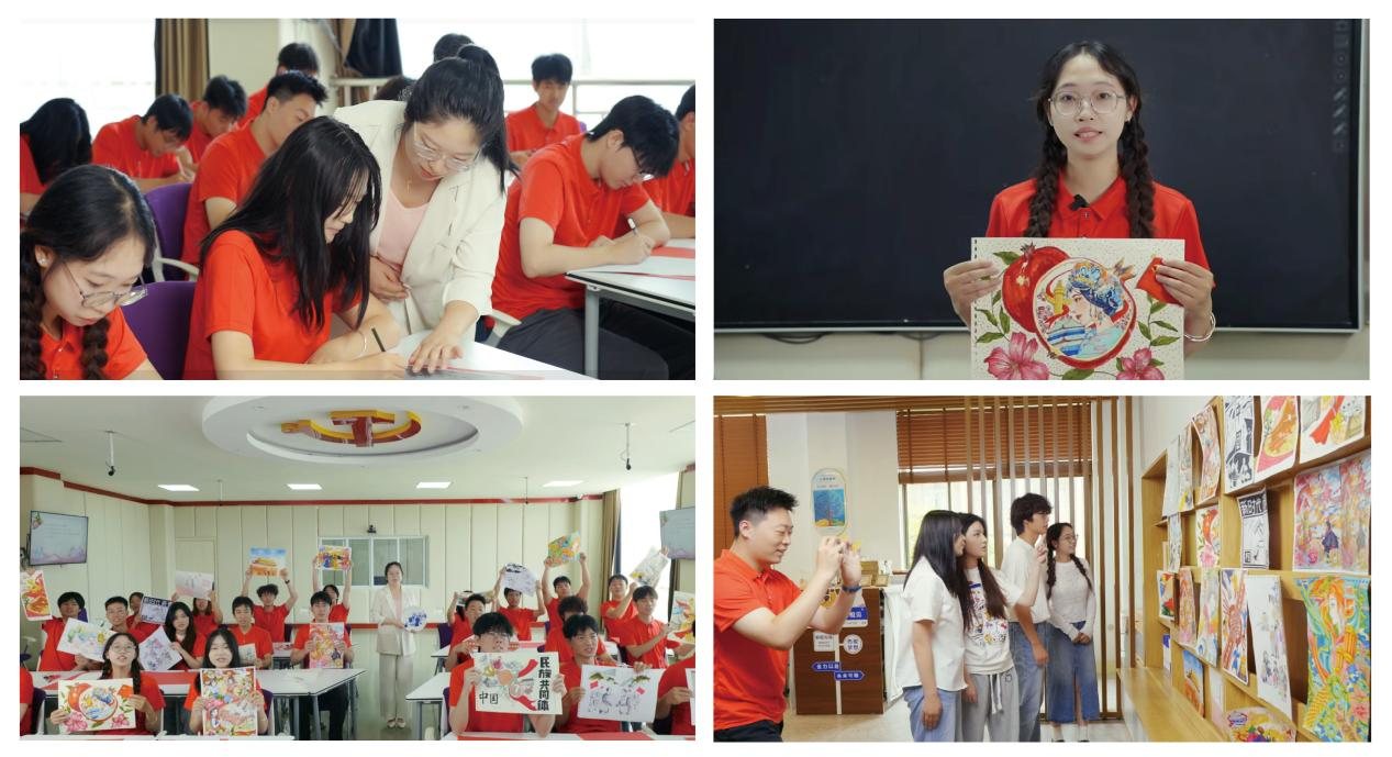 实践创作阶段紧扣“同心石榴籽,共筑中国梦”主题,引导学生将“铸牢中华民族共同体意识”的要求融入青春认知与创作表达。学生充分发挥专业所长,以笔为媒、以情为魂,通过绘画抒发对中华民族共同体的深切认同与赤诚热爱。在作品完成后进行作品分享,学生争相介绍自己的创作理念与作品内涵,在交流中传递民族团结的正能量,以鲜活的作品表达出新时代青年在民族复兴征程中的责任担当。