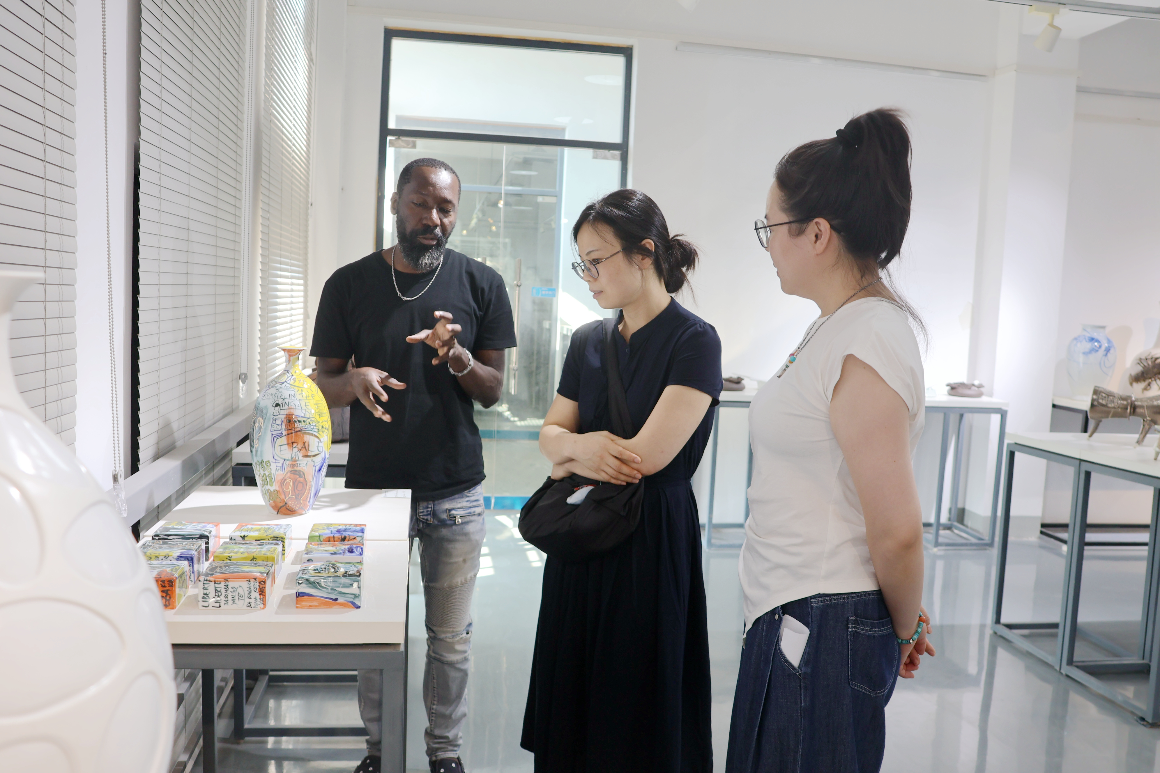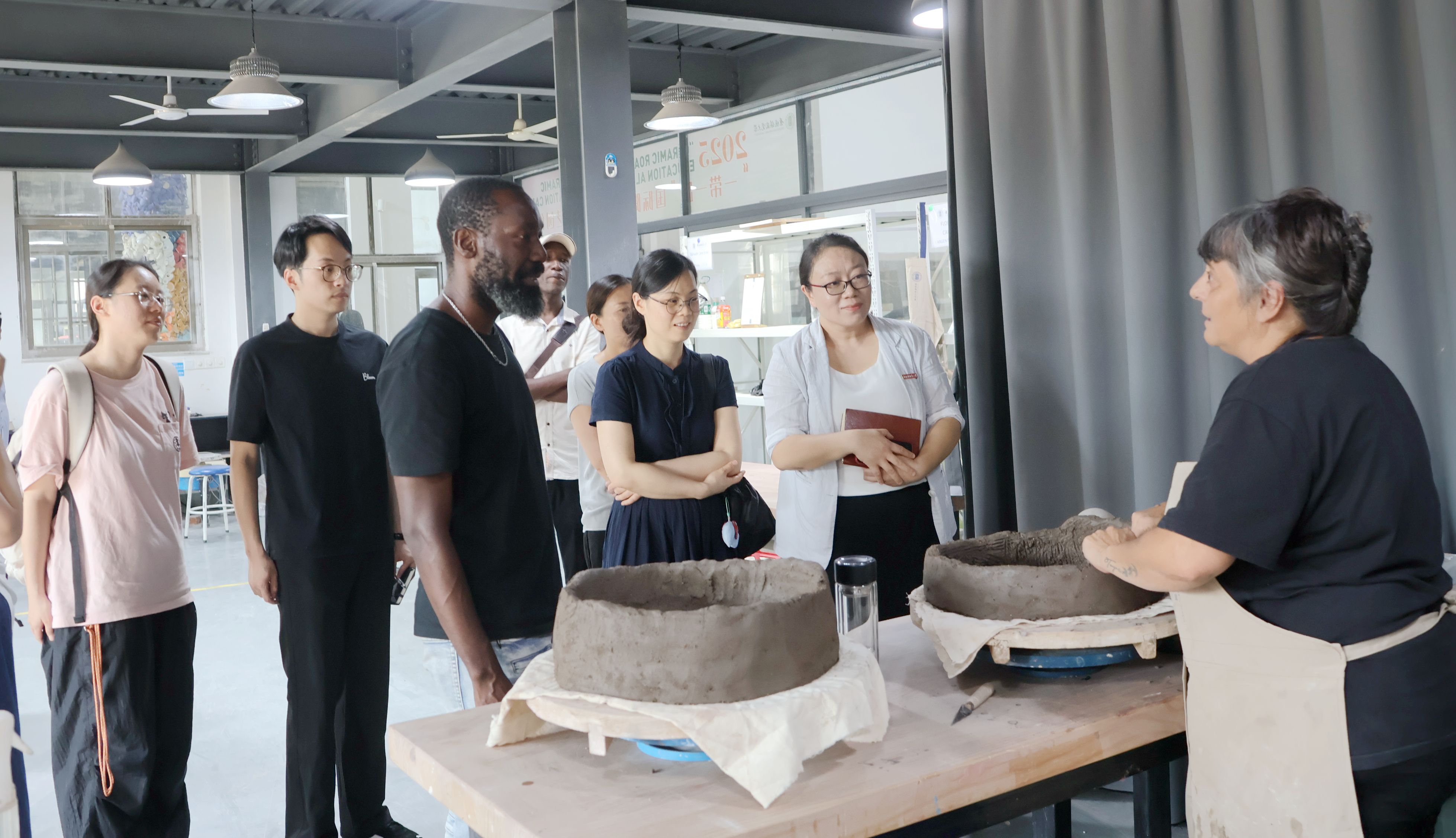 座谈前,郑颖一行还参观了留学生工作室和国际陶艺工作室。