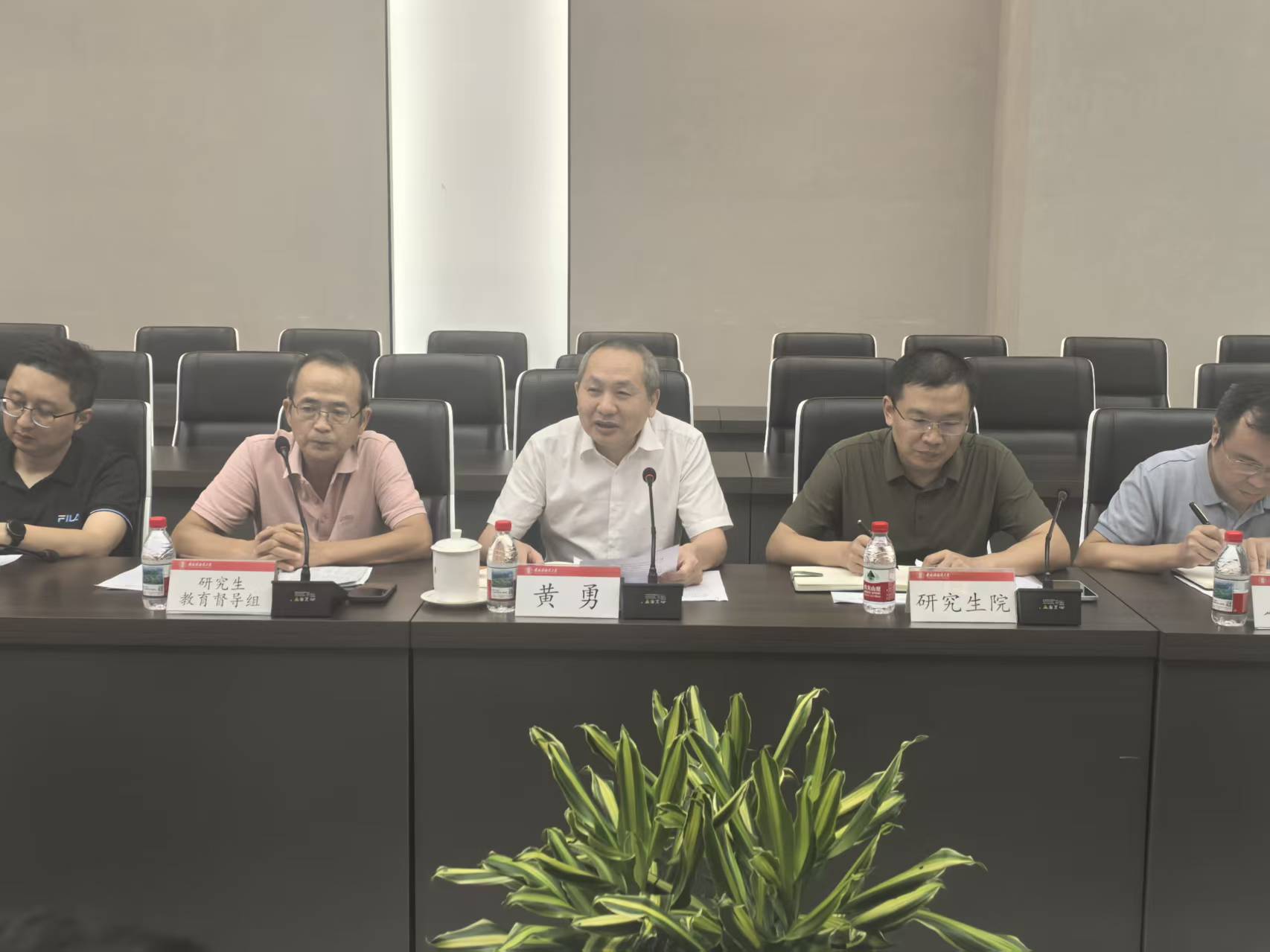 黄勇在讲话中指出,在研究生教育方面,要进一步明晰培养定位,紧盯人才需求动态,及时优化调整课程体系,加强课程建设,不断提升人才培养满意度和适配度。在科研及平台建设方面,要进一步明确工作思路,强化有组织科研,聚焦服务国家重大需求和助力地方发展,优化重组创新资源,不断拓展校地合作,积极推进多层次全方位的产学研合作体系建设。在学科建设方面,要进一步把握工作重点,强化制度创新,统筹推进教育科技人才体制机制一体改革,不断优化学科专业布局,构筑特色鲜明的高质量学科体系。他强调,一是要进一步加强实验室、科研平台和研究生工作站安全管理,不断强化安全意识,切实保障师生生命健康安全。二是要进一步改善和提升研究生培养软硬环境,充分发挥“软环境”的“硬效能”,切实建设良好培养生态。
