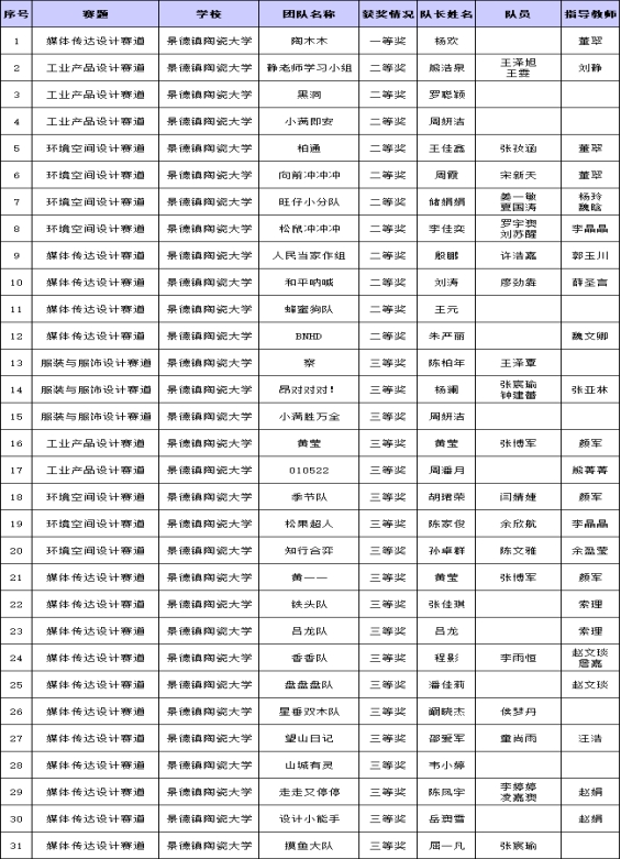 比赛获奖团队名单
