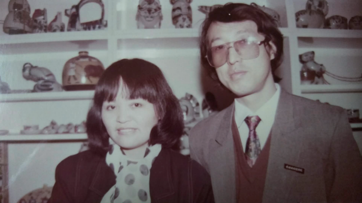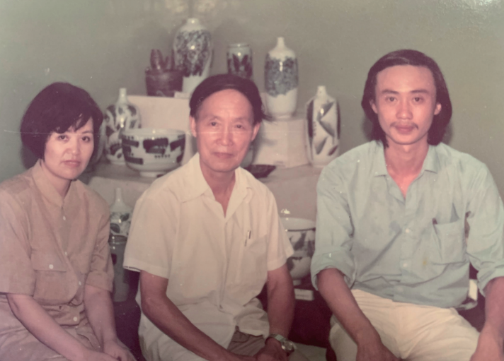 我和丈夫朱乐耕同为施老师门下硕士研究生。我生孩子的时候,我的丈夫朱乐耕考上研究生,成为施老师的第一个研究生。三年后,我丈夫毕业,我进入陶瓷学院也成为施老师的研究生。