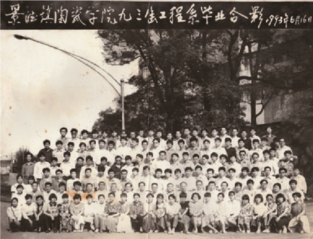 九三届工程系的毕业合影(江小军在最后一排左三)