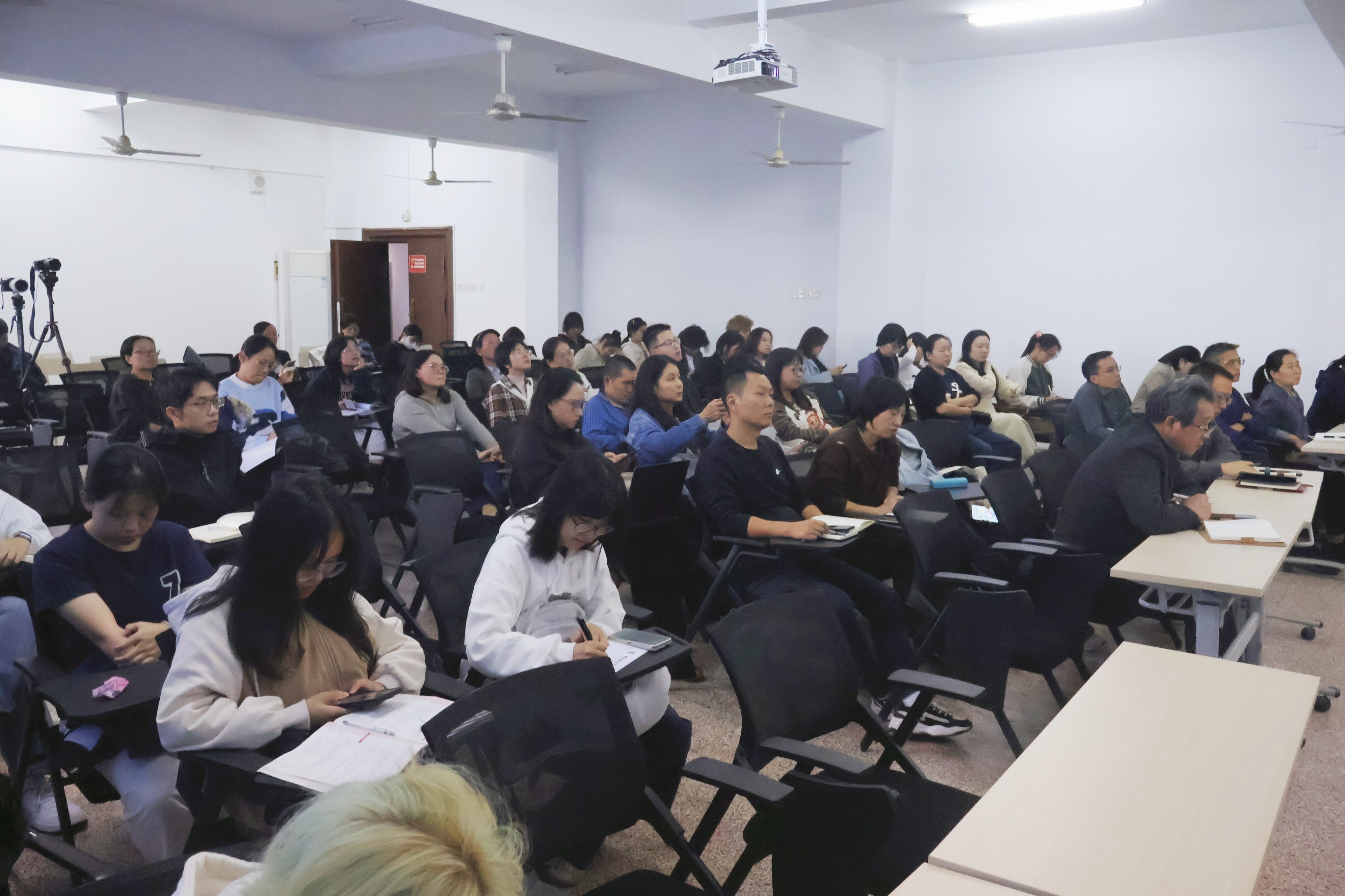 讲座中,戴光荣聚焦语料库在生成式人工智能背景下的外语学习及教学研究中的功用,围绕自身在教学与科研领域的实践经验,结合语料库应用、大模型技术及人才培养等核心话题,与师生分享了自己多年来的研究成果。他提到,要构建“语料库 + 翻译研究” 体系,用大模型实现文献综述自动化等高效操作, 并强调人才培养要以 “目标导向” 推进,通过集中轰炸式导读、批判性阅读、论文反复修改等多个方面激发学生潜力,体现 “以学生为中心、重实践重创新” 理念。