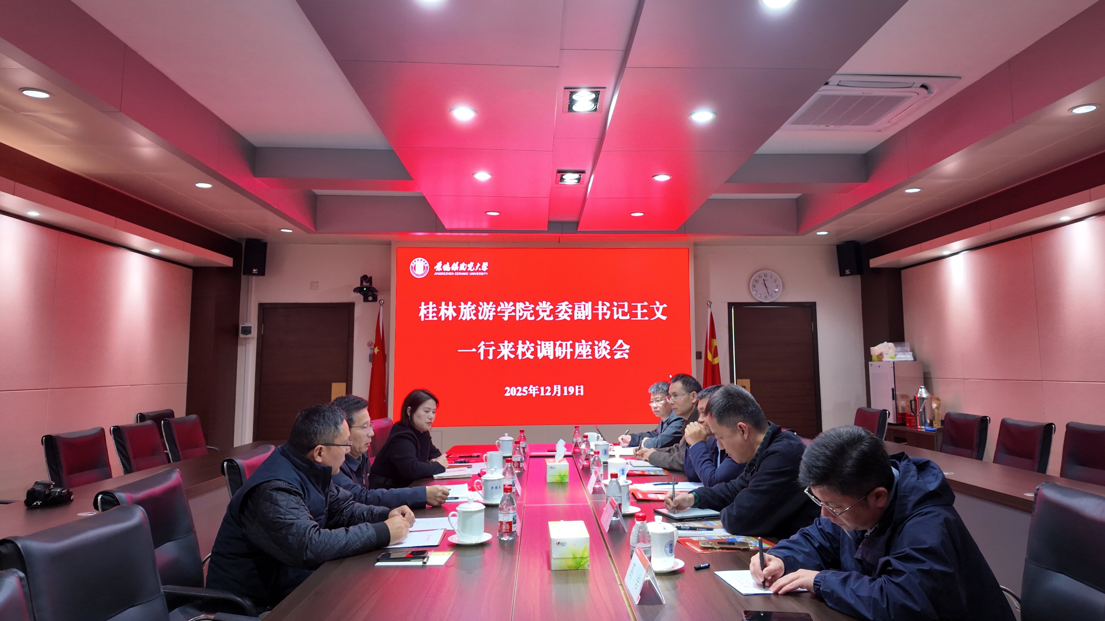 本网讯(文/乐宇婷 图/黄奕一 章思艳)12月19日上午,桂林旅游学院党委副书记王文一行来校考察交流,校党委常委、党委宣传部部长曾德生热情接待王文一行并在我校行政楼801会议室召开座谈会。