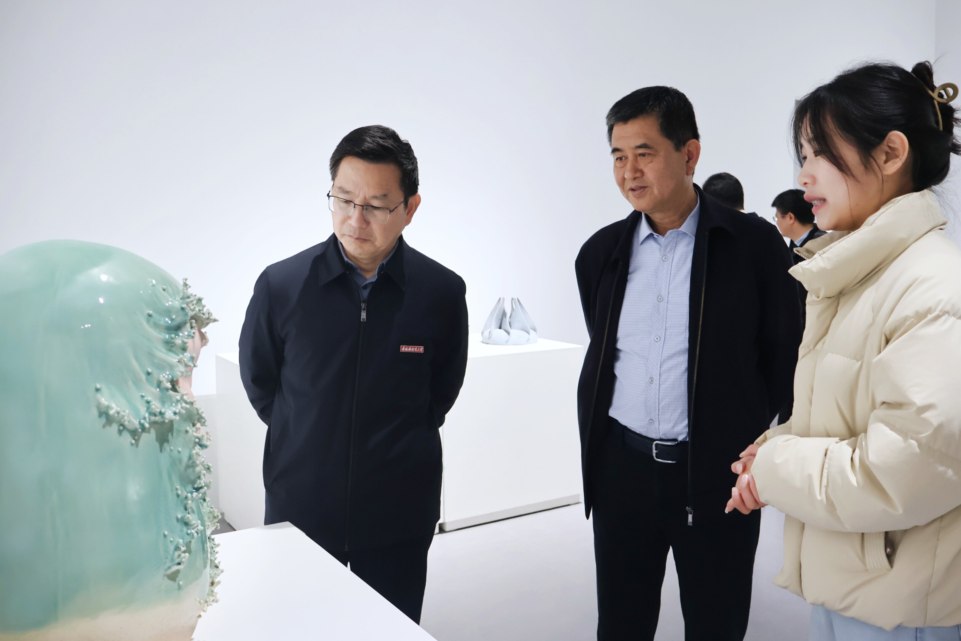 会前,王文一行还参观了我校润心馆、中韩陶艺交流展、国际大学生陶艺竞赛获奖作品和王向阳林栋双人展。