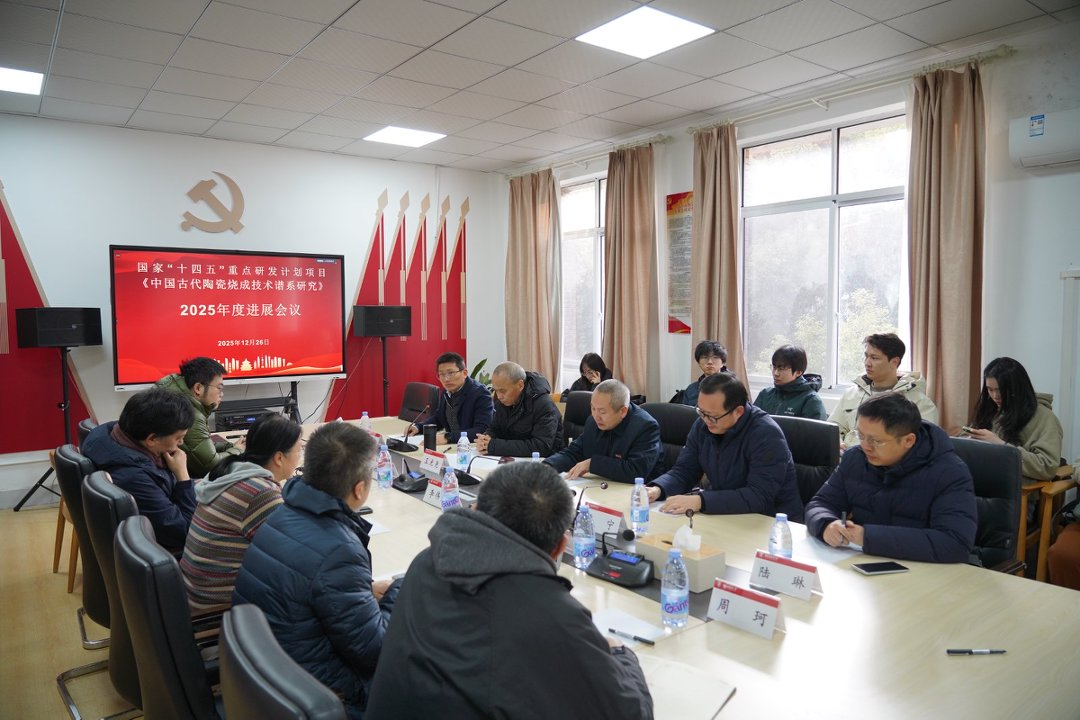 本网讯(文/夏孝言 图/李正洋 李润成)为扎实推进我校国家重点研发计划项目的实施,促进各课题间协同攻关与成果集成,“十四五”国家重点研发计划——“中国古代陶瓷烧成技术谱系研究”项目2025年度工作进展研讨会于12月26日在景德镇陶瓷大学新厂校区考古文博学院会议室召开。校党委常委、副校长黄勇出席会议并致辞,项目首席专家故宫博物院二级研究馆员、我校特聘教授王光尧出席会议并作总结讲话,我校考古文博学院院长陈宁出席会议并致辞。课题负责人北京大学研究员丁雨、复旦大学教授郑建明、中国科学院上海硅酸盐研究所教授李伟东、北京科技大学教授姜泽毅、我校教授吴军明,以及我校考古文博学院及课题承担、参与单位等相关负责人参加会议。
