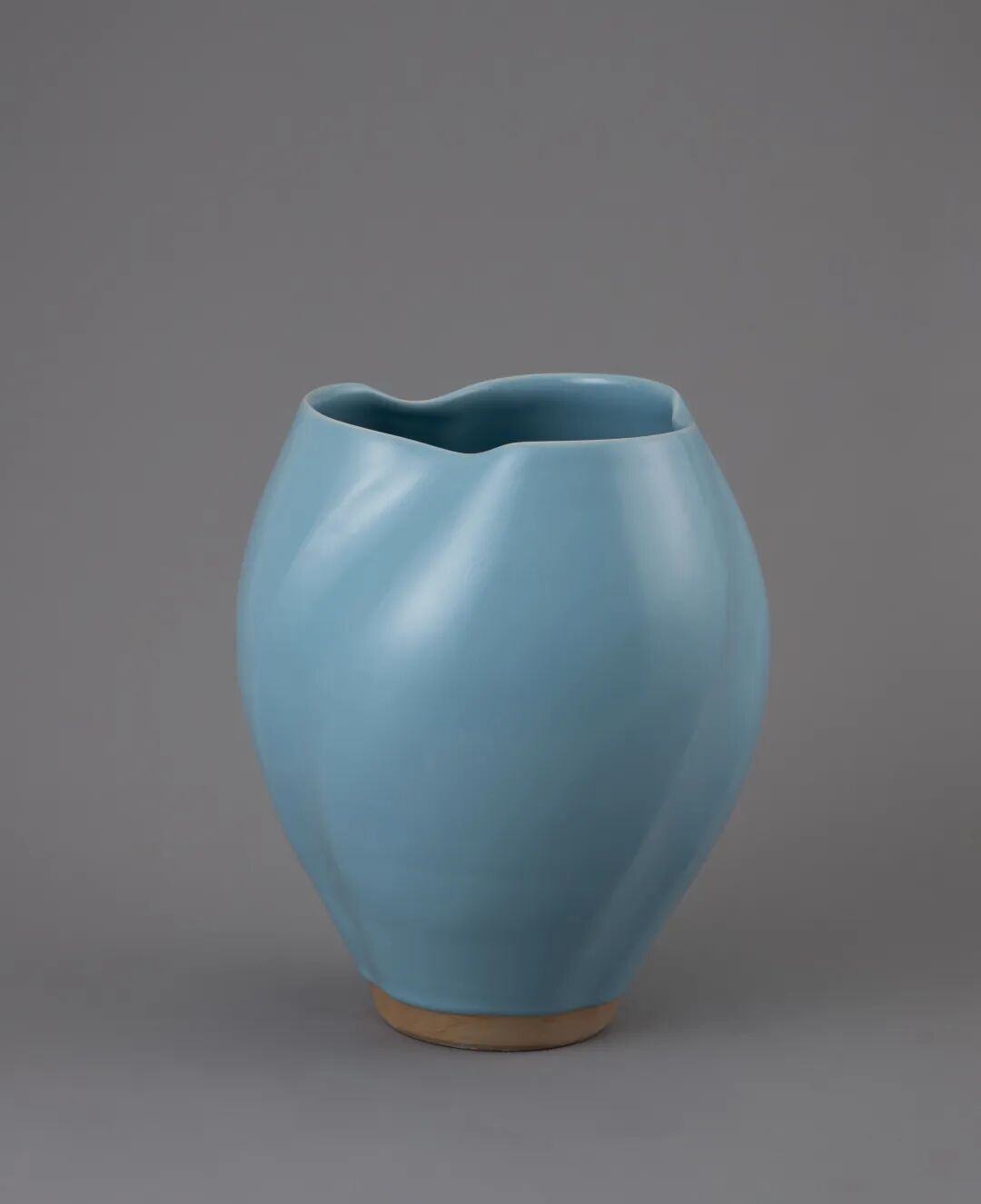 A:At that time, my main interest was in vessel form and the relationship between line and shape. I made some simplified variations in form. For glaze color, I adopted a northern celadon palette inspired by the“sky clearing after rain”hue—an image long associated with classical Chinese ceramic aesthetics and distinct from the sensibility of southern celadon. In terms of form, I drew on the rhythmic quality of calligraphic brushwork, allowing the vessel’s contour lines to breathe and undulate.