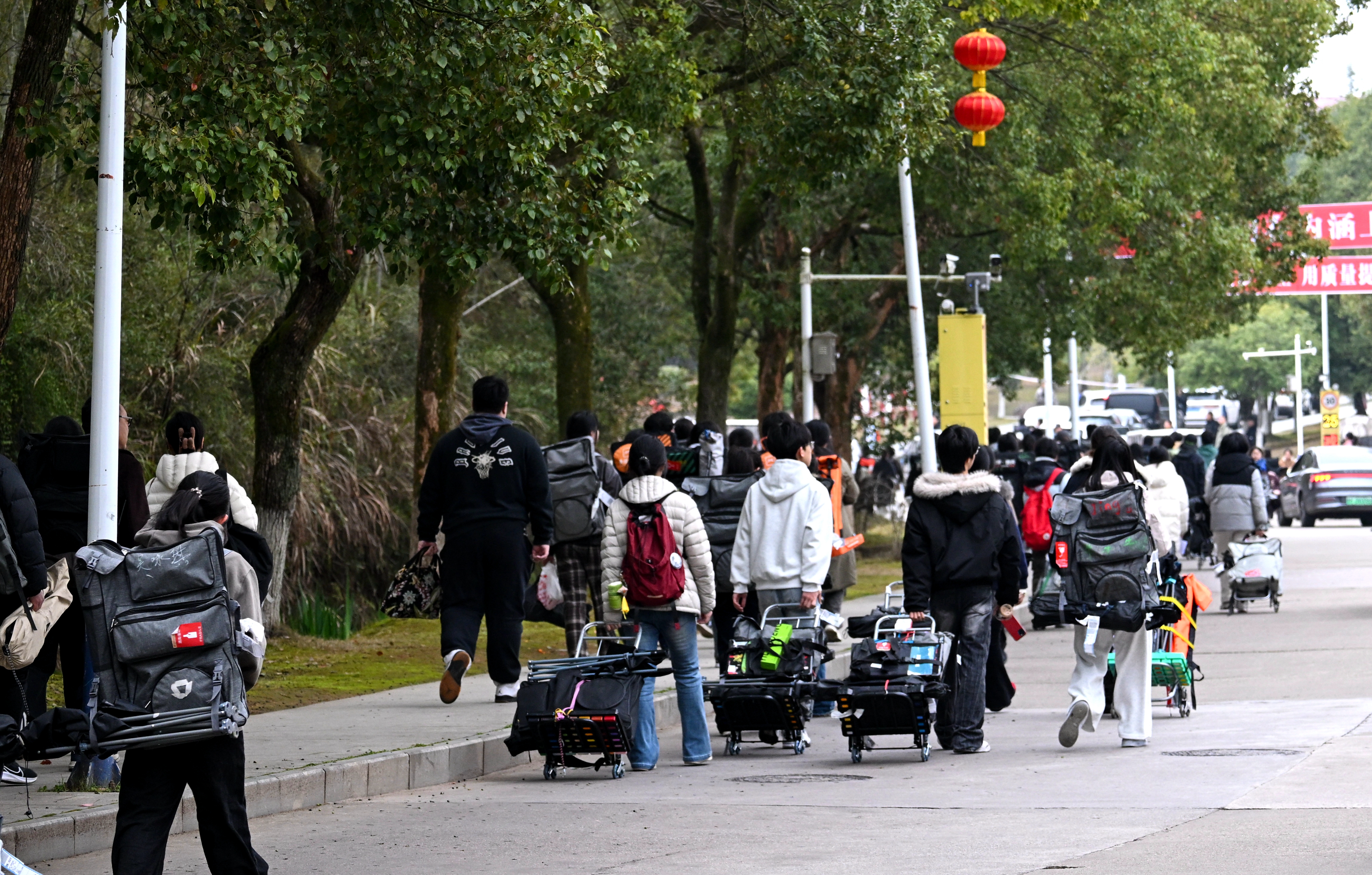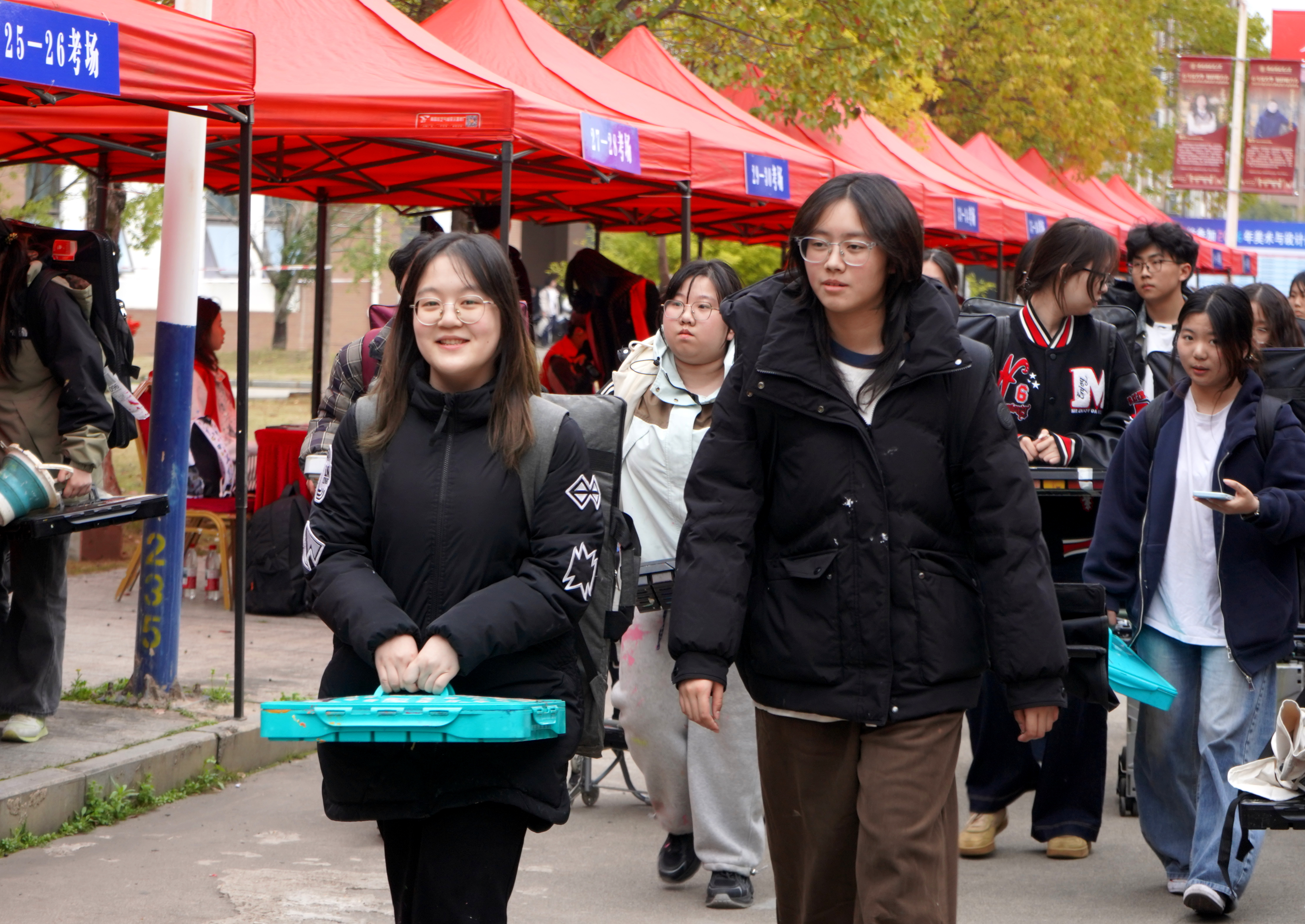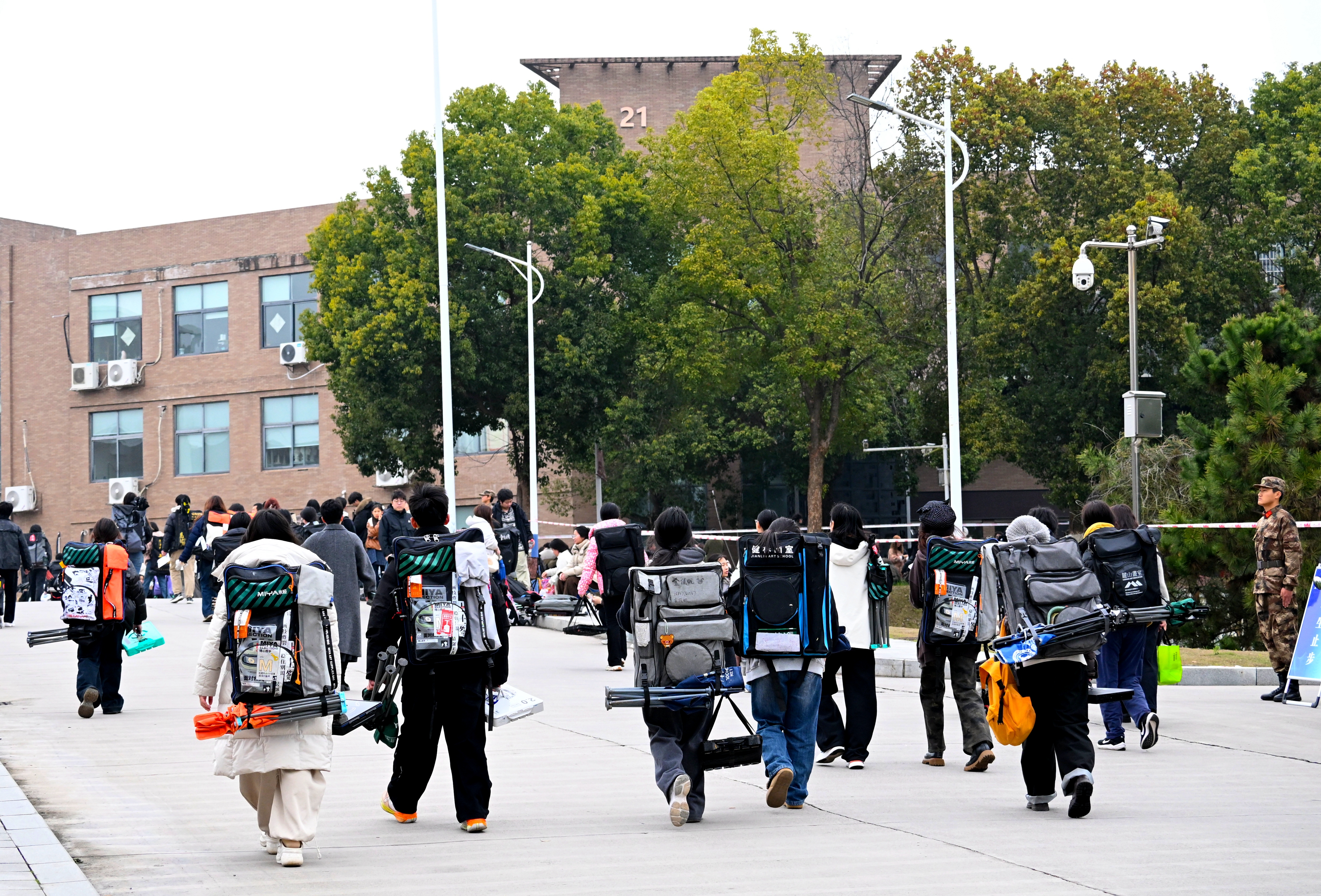 考生们背着画具步履从容