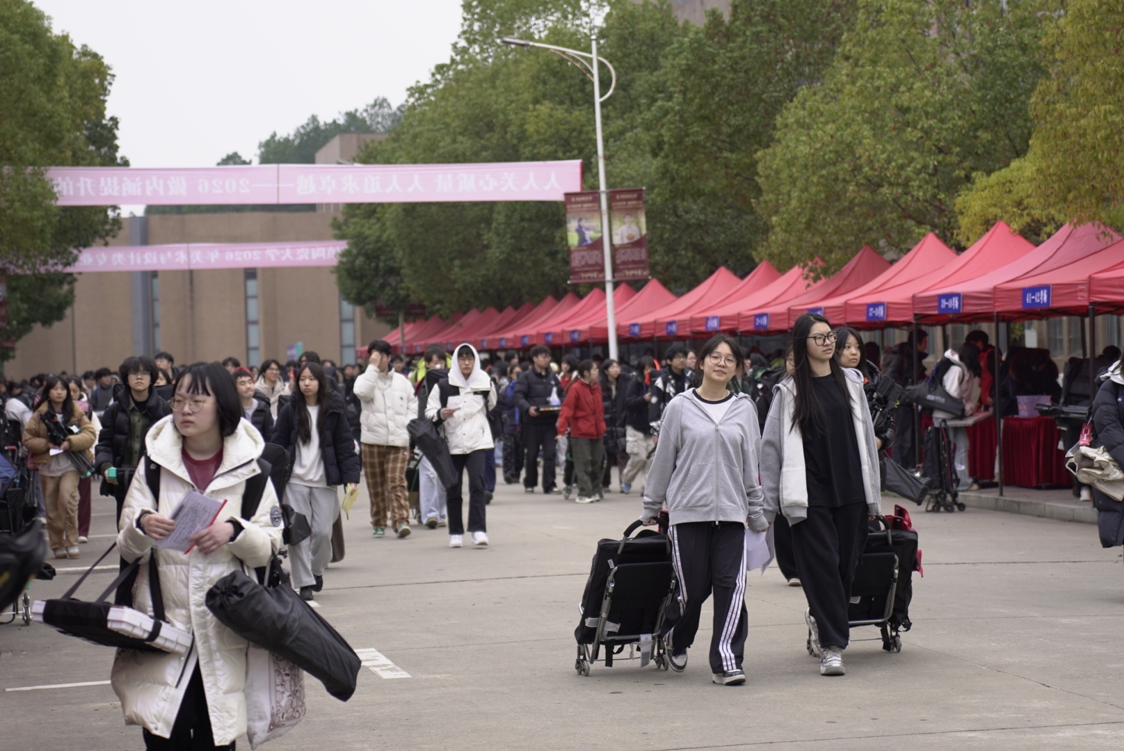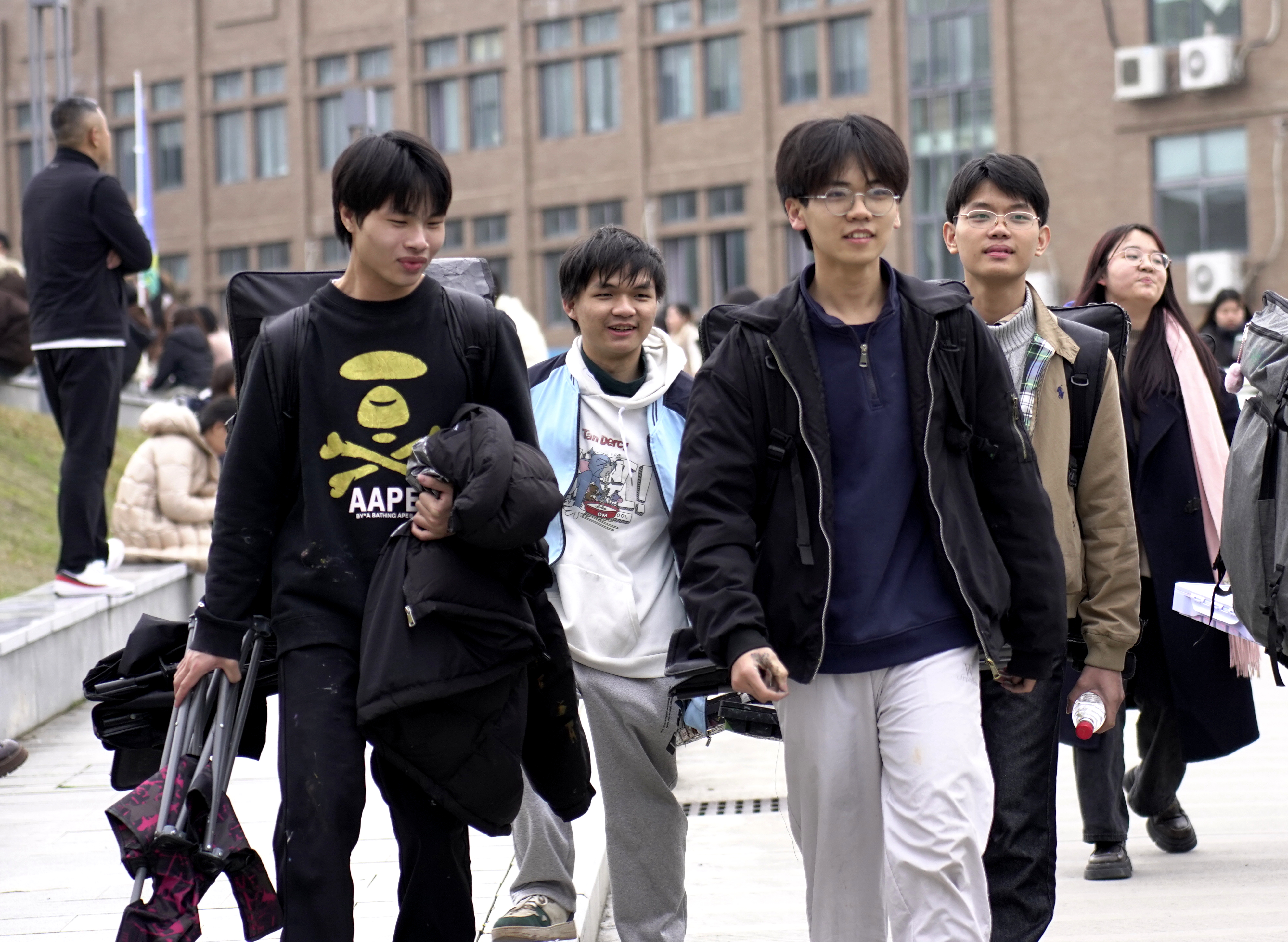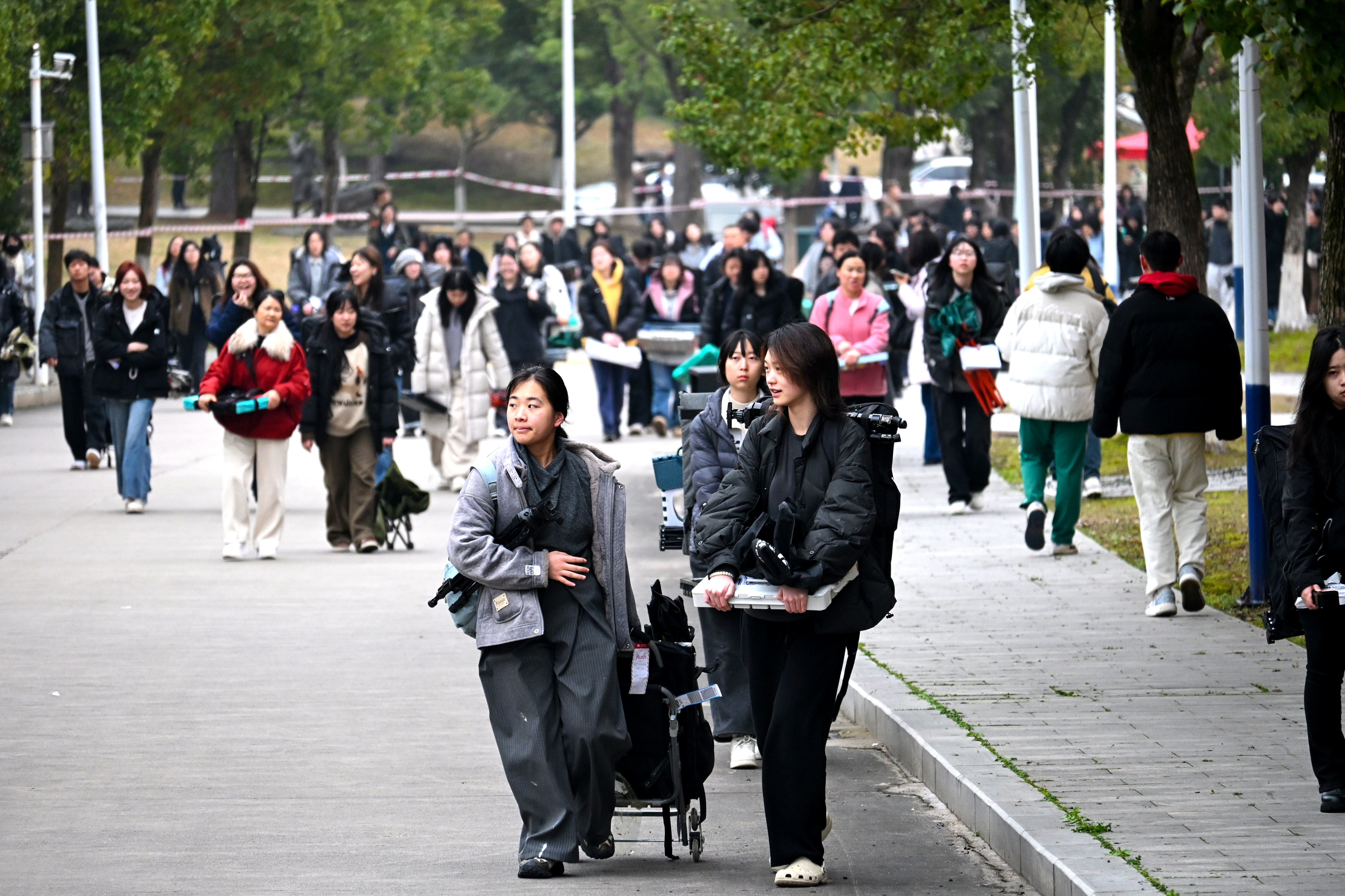 考生们背着画具步履从容