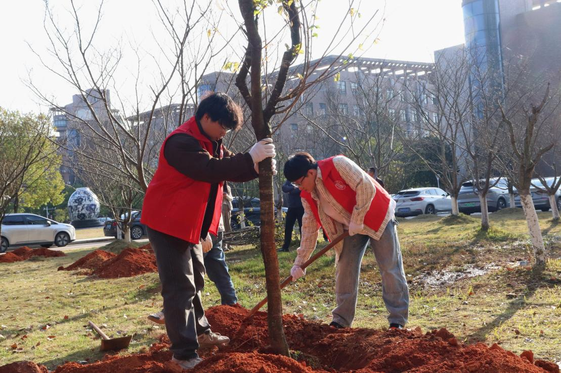 仪式结束后,陈云霞与师生代表一同前往勤学楼前樱花林开展植树活动,以实际行动为美丽校园增添新绿。