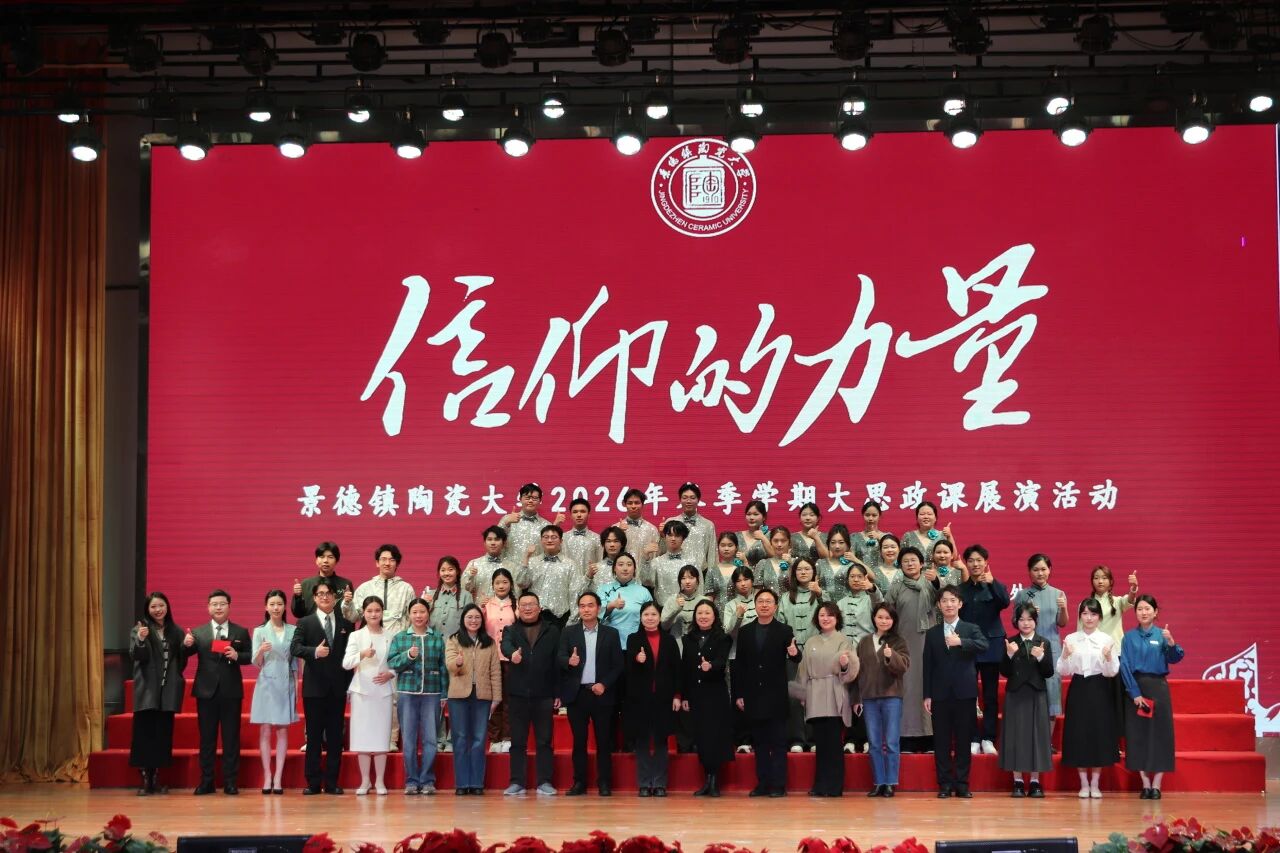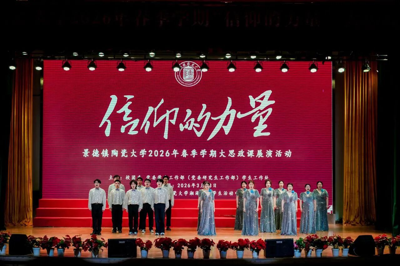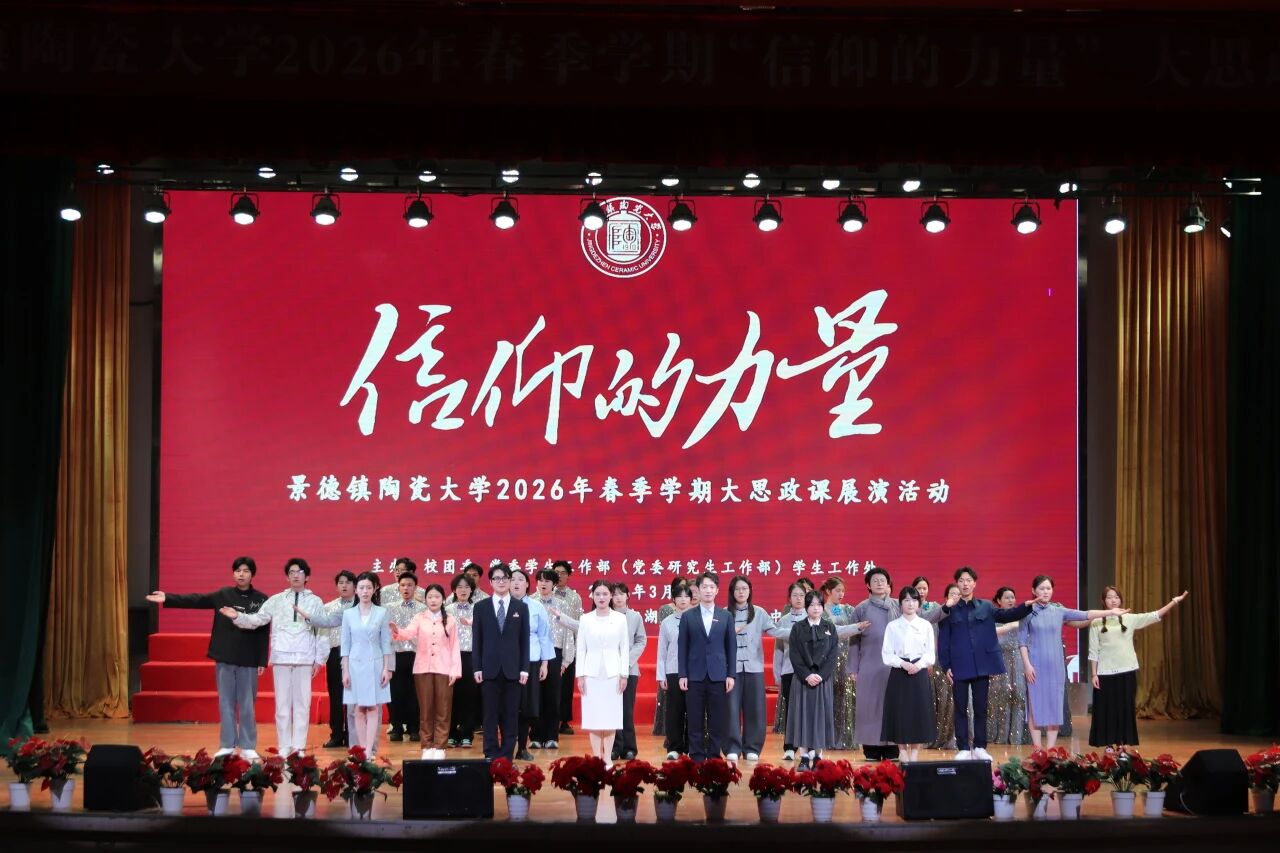 在全体师生合唱《景德镇陶瓷大学校歌》中,“信仰的力量”景德镇陶瓷大学2026年春季学期大思政课展演活动落下帷幕。