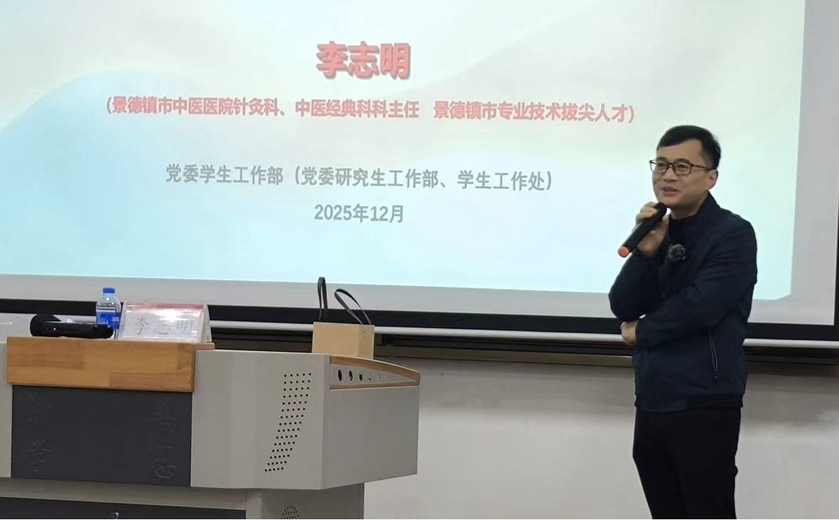 本网讯(党委学生工作部(党委研究生工作部、学生工作处)余少奇 康鑫阳)12月11日下午,景德镇市中医医院针灸科、中医经典科主任李志明应邀做客我校广雅鳣堂,在新厂校区东阶教室作题为《中医之美:文化传承与现代生活的共生之道》的专题讲座,师生代表共170余人到场聆听。