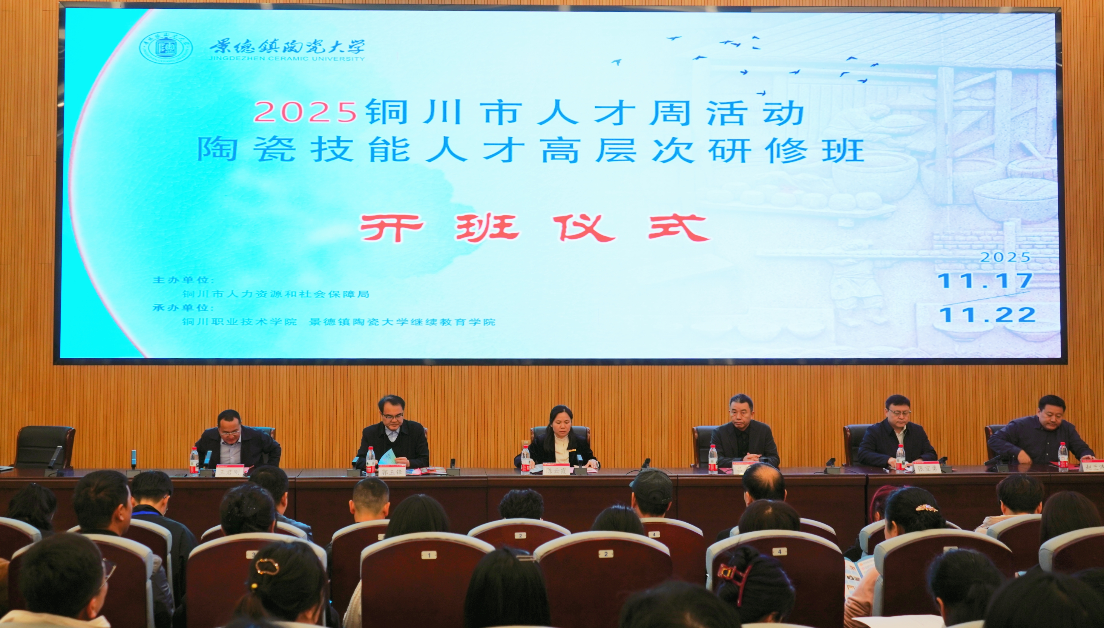 本网讯(文/乐雨婷 胡静 图/周唯 蒋芷怡 王心怡)11月17日上午,陶瓷专业高技能人才高效提升培训班开班仪式在我校湘湖校区研究生实验楼报告厅举行。本次培训由铜川市人力资源和社会保障局主办,铜川职业技术学院、景德镇陶瓷大学继续教育学院共同承办。景德镇陶瓷大学党委常委、副校长陈云霞,景德镇陶瓷大学原副校长、...