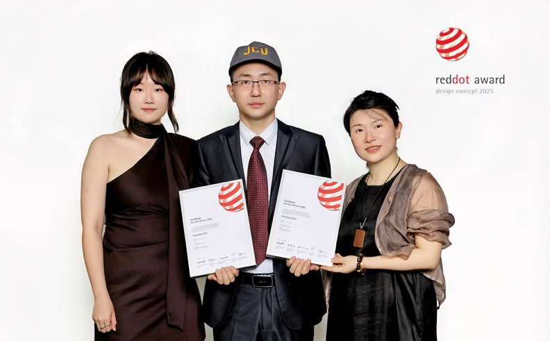 本网讯(设计艺术学院 汤青卿)近日,2025年红点奖颁奖典礼在新加坡首都大厦隆重举行。由设计艺术学院产品设计专业教师张明春、环境设计专业教师杨玲,2021级产品设计专业本科生武雯婷、刘长胜,2022级产品设计专业本科生胡希含,2023级产品设计专业交互方向本科生刘心怡与2023级艺术设计专业环境设计方向研究生褚娟娟所...