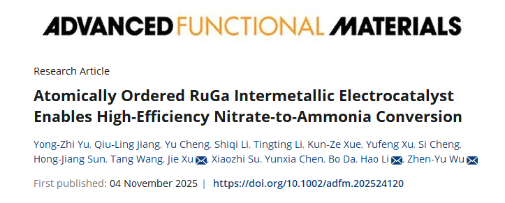 本网讯(国家日用及建筑陶瓷工程技术研究中心 谭丽)近日,我校国家日用及建筑陶瓷工程技术研究中心博士余永志以第一作者身份在国际材料领域顶级学术期刊《Advanced Functional Materials》(影响因子19.0)上发表题为《Atomically Ordered RuGa Intermetallic Electrocatalyst Enables High-Efficiency Nitrate-to-Ammo...