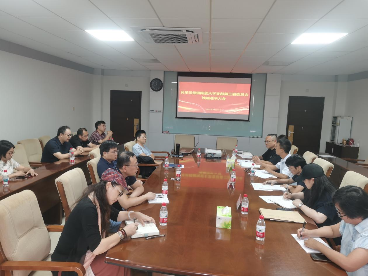 大会听取并审议了高扬同志代表支部所作的工作报告,宣读了《民革景德镇市委会关于同意民革直属景德镇陶瓷大学支部换届的批复》,审议并通过《选举办法(草案)》,选举产生新一届支部委员会。高扬当选支部主委,潘玲霞、郭俊、葛振兴当选支部副主委,江毅、黄莹当选支部委员。高扬代表新一届支部班子作表态发言,表示将继承发扬民革优良传统,全面加强自身建设,着力提升参政议政水平,深入开展社会服务,为助推景德镇市及学校高质量发展贡献更大力量。
