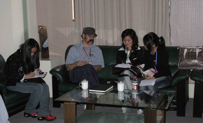 印象非常深刻的是,在2008年“中美陶艺研讨会”举行之际,余孝平老师多次对我们这些志愿者进行双语培训,从基本的礼仪常识到专业的陶瓷工艺,从景德镇历史到瓷都特色文化。在他看来,志愿者代表着中国的形象,也肩负着宣传祖国优秀历史文化的使命,一切都马虎不得,所以他对志愿者提出了勤奋、认真、热情、周到的要求,并对我们进行逐个考查。余孝平老师和外语系的老师们,用自己的博学和严谨,把我们送到更大的舞台历练,为我们的职业生涯奠定了坚实的基础。
