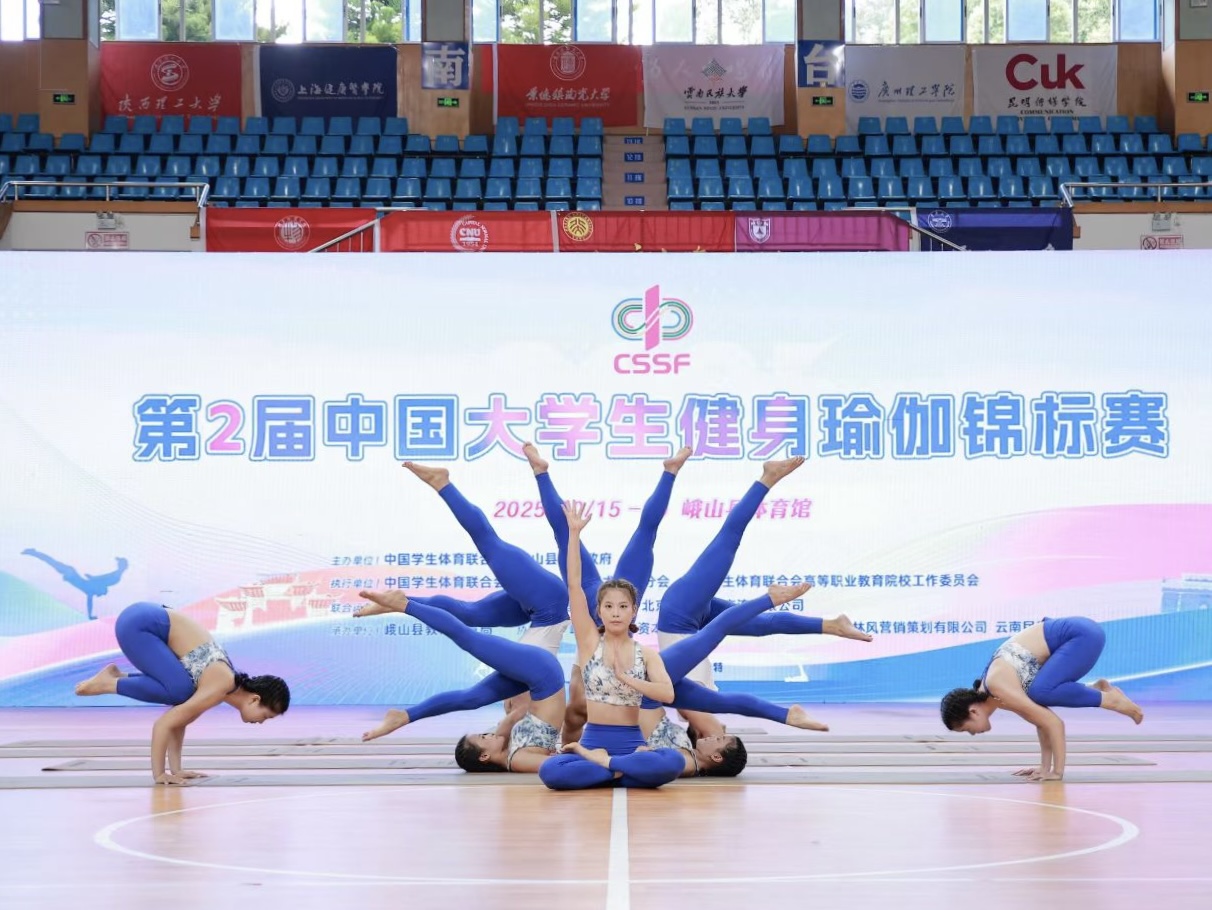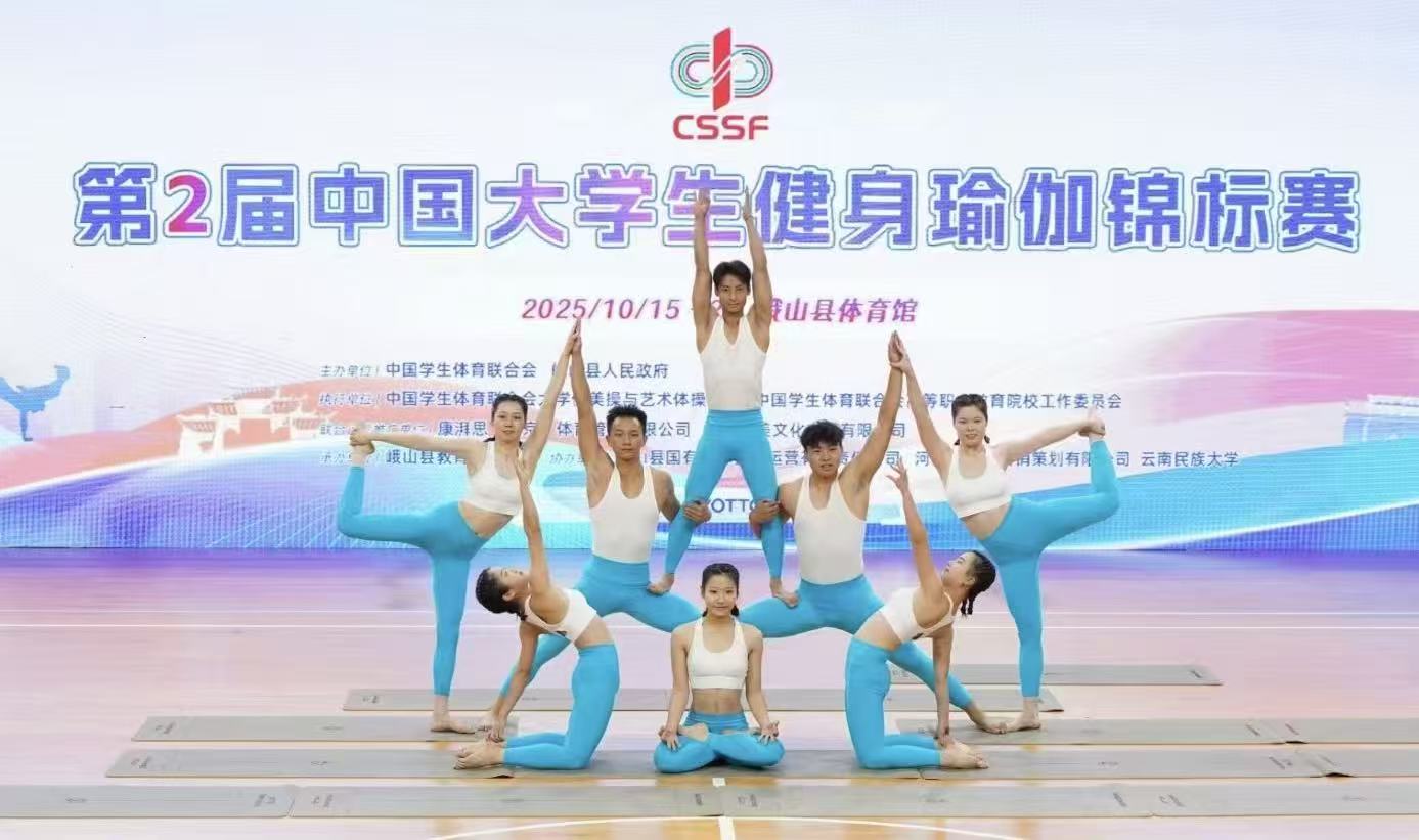 本次大赛由中国学生体育联合会与峨山县人民政府联合主办,是全国高校间级别最高、规模最大的健身瑜伽类赛事之一。来自全国52所高校的576名运动员齐聚一堂,同台竞技,共同演绎了一场“力与美、柔与刚”交织的青春盛会。
