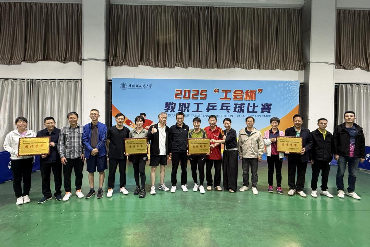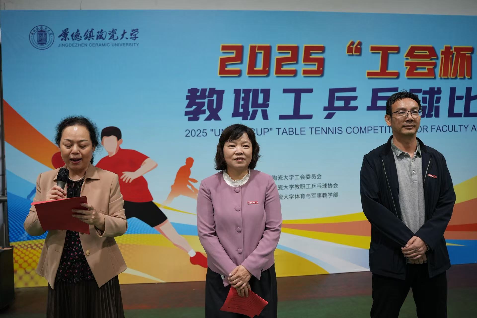 本网讯(文/校工会 图/严一涵 胡曦文 宋暖 吴夕然 朱茗霏 王子轩)为深入贯彻落实习近平总书记关于深入实施全民健身国家战略的重要论述,推进校园文化建设,提升教职工强身健体意识,展示教师立德树人、自信自强的精神风貌,10月30日至31日,由景德镇陶瓷大学校工会主办,景德镇陶瓷大学体育与军事教学部、景德镇陶瓷大学乒乓球协会协办的2025年运动会“工会杯”教职工乒乓球赛在湘湖校区体育馆举行。校党委副书记王海波出席闭幕式并颁奖。校党委常委、副校长胡银娇宣布开幕并致辞。开幕式由工会主席李蔓华主持。