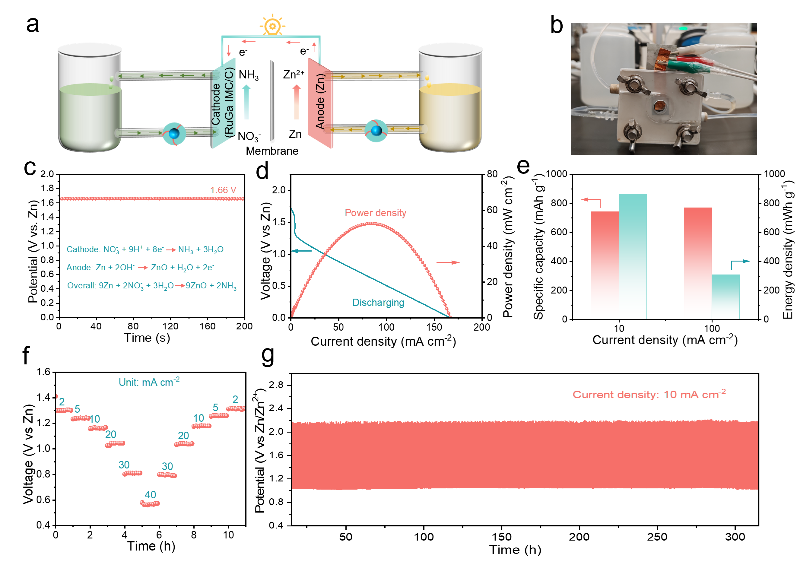 图3 RuGa IMC/C基锌-硝酸根电池性能测试