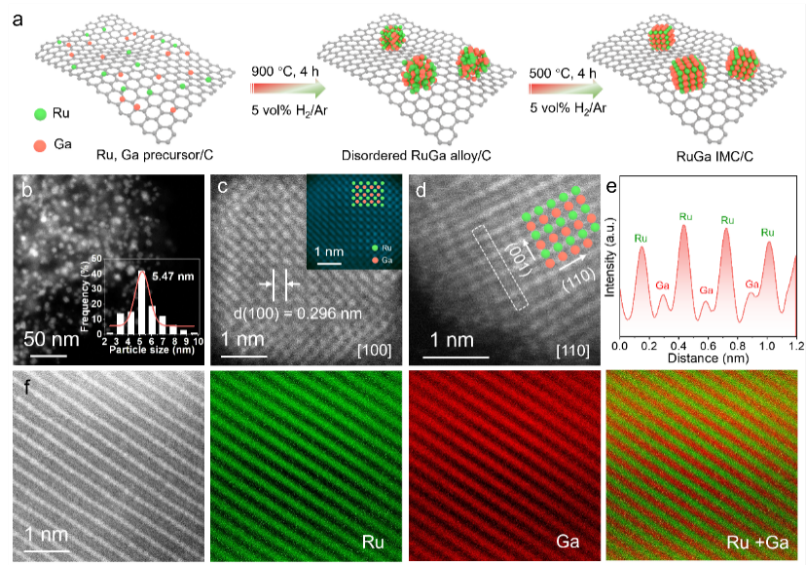 图2 RuGa IMC/C的合成过程及其微观结构表征
