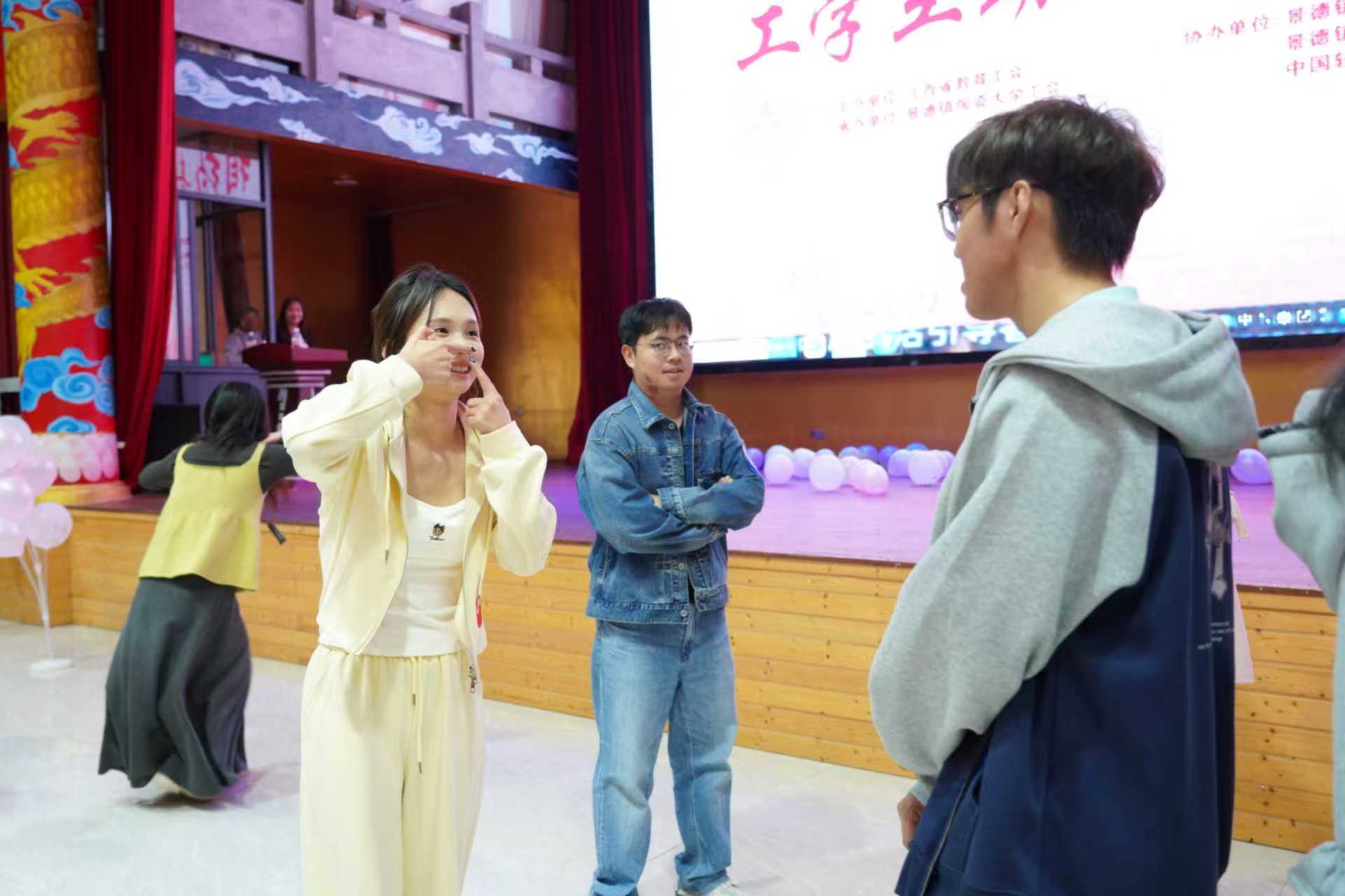 本网讯(校工会 余俊)11月16日,由江西省教育工会主办、我校工会承办的“工学互动 相约青春”江西省教育工会第七区域单身青年教职工联谊活动,在浮梁县双龙湾生态园浪漫举行。来自景德镇陶瓷大学、中国轻工业陶瓷研究所、景德镇学院、景德镇市教育工会、江西陶瓷工艺美术职业技术学院、中国直升机设计研究所、航空工业昌飞等单位的130余名单身青年教职工齐聚一堂,共赴一场青春之约。校党委常委、副校长胡银娇出席活动并致辞。