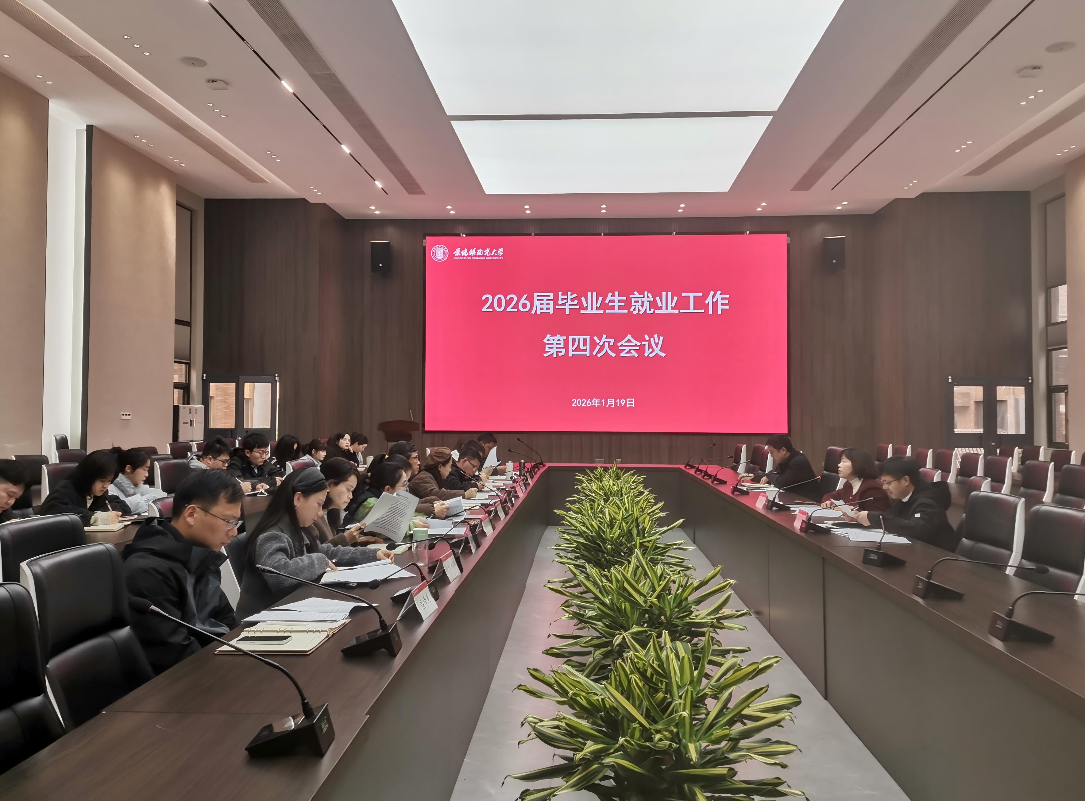 本网讯(招生就业处 孙传浩)1月19日,我校在湘湖校区综合会议厅召开2026届毕业生就业工作第四次会议。会议学习传达了2026年全国教育工作会议精神,总结前期工作成效,并对寒假促就业重点任务进行部署。校党委常委、副校长胡银娇主持会议并讲话,招生就业处、各学院相关负责人及全体就业辅导员参加会议。