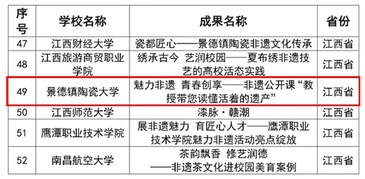 本网讯(党委宣传部)近日,教育部公布了2025年高校“礼敬中华优秀传统文化”宣传教育活动结果。本次江西省高校共入选作品19件,我校选送的3件作品均入选,获奖总数位列全国第一(并列)。其中,《陶瓷会说话!用代码重塑China之美》入选“数智未来”焕活传统文化案例优秀作品,《烽火校史:彭友善的抗战画卷》入选“烽火记忆”高校红色故事优秀作品,《魅力非遗青春创享非遗公开课“教授带您读懂活着的遗产”》入选“魅力非遗”原创优秀作品。