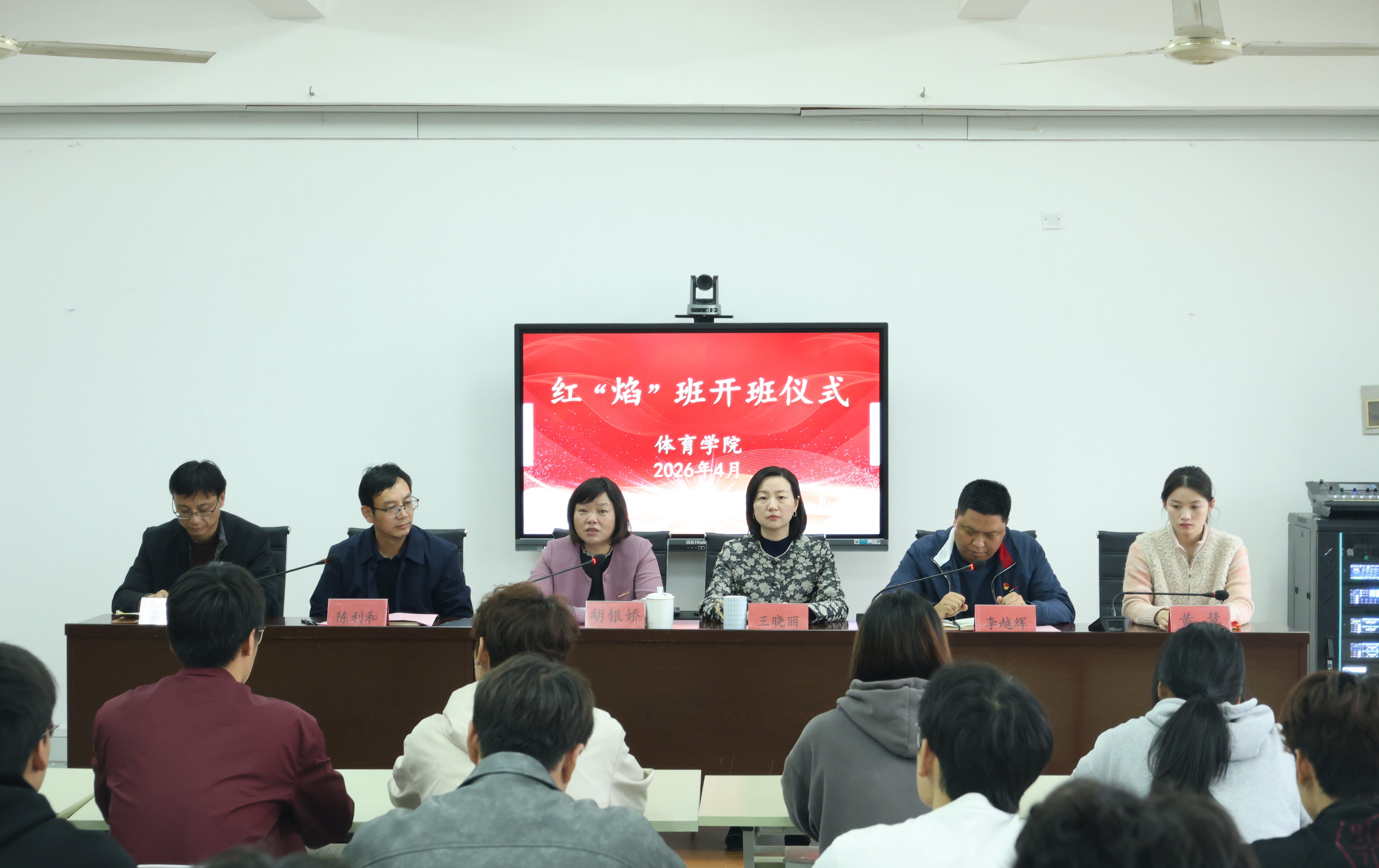 活动中,胡银娇出席体育学院红色班级“红焰班”开班仪式,并就“红焰班”建设提出三点期望:一是争做信仰坚定的“排头兵”,筑牢理想信念根基;二是勇当顽强拼搏的“先锋队”,彰显体育学子本色;三是力创示范引领的“标杆连”,发挥先锋模范作用。她勉励全体学员将个人理想融入国家发展大局,以严标准、高要求锤炼自我,让“红焰”星火凝聚燎原之力。