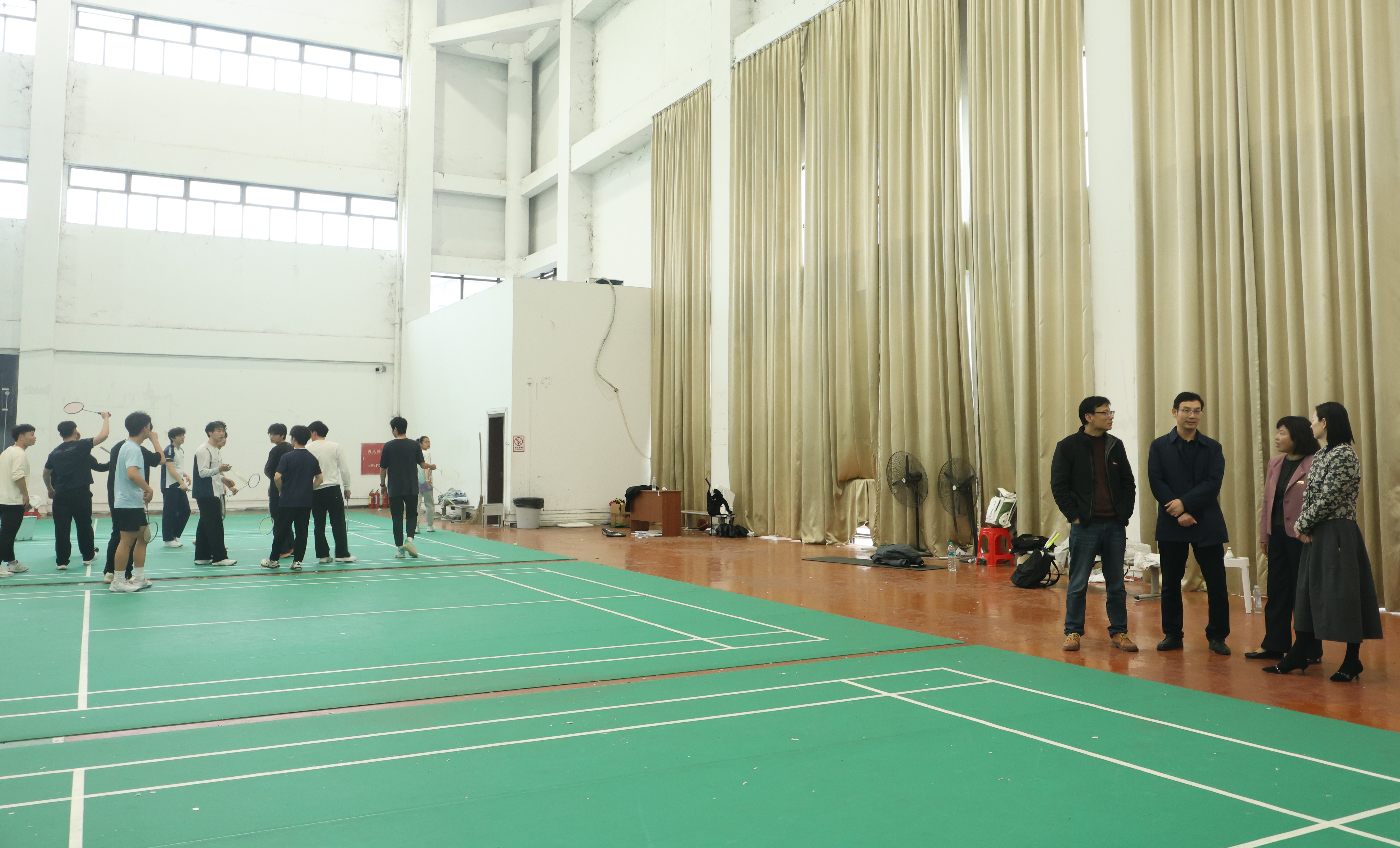开班仪式结束后,胡银娇先后前往第一田径场与体育馆随堂听课,实地观摩课堂教学开展情况,全面细致了解体育学院日常教学运行实况。