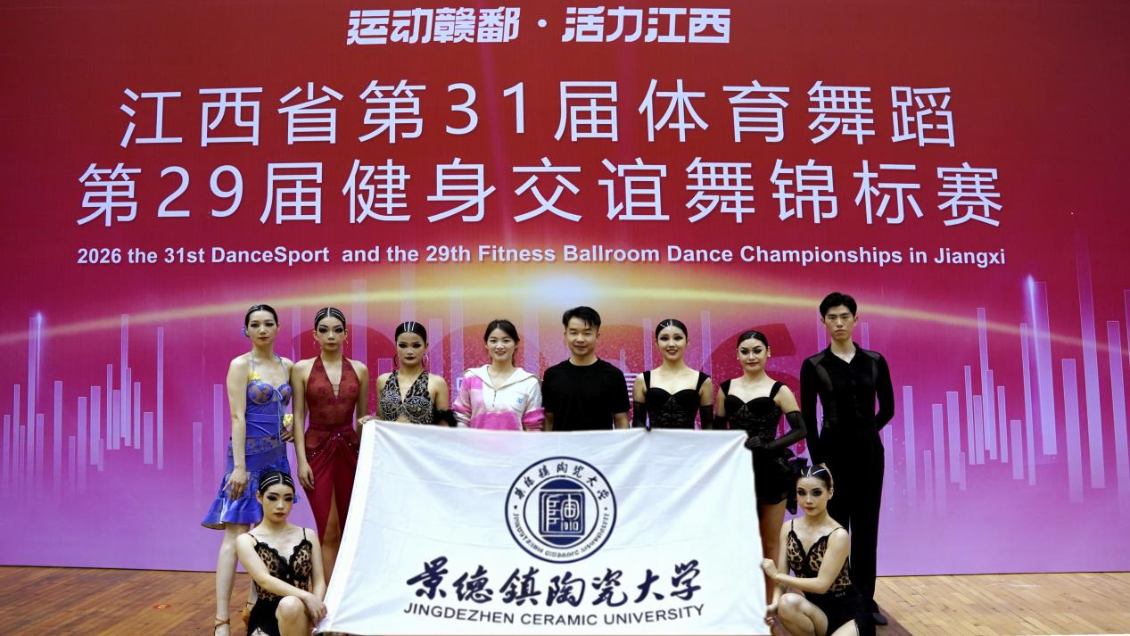 本网讯(体育学院 黄慧)4月12日,江西省第31届体育舞蹈锦标赛暨第29届健身交谊舞锦标赛在南昌圆满落幕,全省共26个单位、500余名运动员参加比赛。我校代表队在李玲、胡霏、黄慧三位老师的带领下,凭借精湛技艺与顽强拼搏精神,斩获12枚金牌、1枚银牌、3枚铜牌,创下我校参加全省体育舞蹈比赛历史最佳成绩。