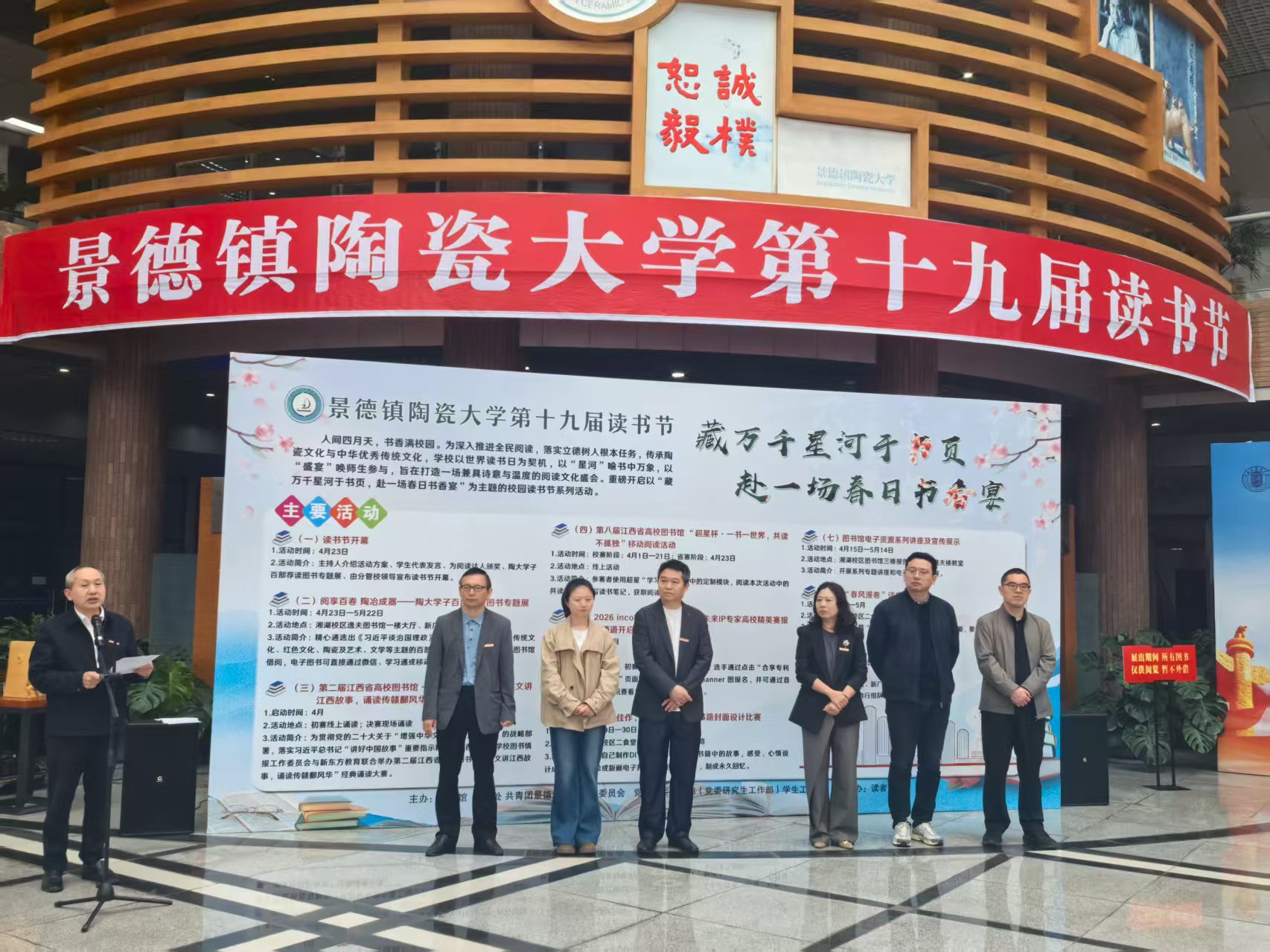 黄勇在讲话中指出,党的二十大报告明确提出深化全民阅读活动,这是建设书香社会、增强文化自信的战略部署,《全民阅读促进条例》更是将全民阅读提升至国家战略高度。本届读书节特别策划了“阅享百卷,陶冶成器——陶大学子百部荐读图书”专题展,旨在为广大师生搭建一座跨越时空的文化桥梁,引导广大师生在书香中触摸经典、对话伟人,在阅读中赓续文脉、厚植情怀,实现精神的共鸣与升华。