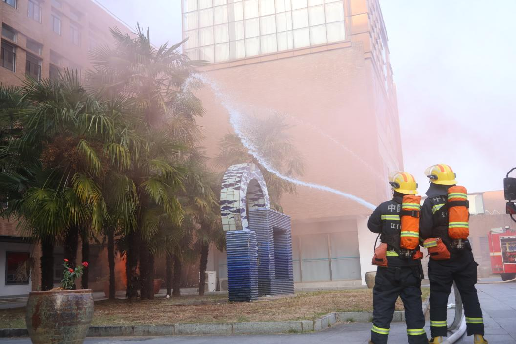 演练模拟突发火情,师生们迅速响应、沉着有序,沿指定路线疏散至安全区域,全过程紧凑高效。随后,浮梁县消防应急救援大队指战员现场讲解示范灭火器正确使用方法及初期火灾扑救技巧,并指导师生代表进行实操练习。
