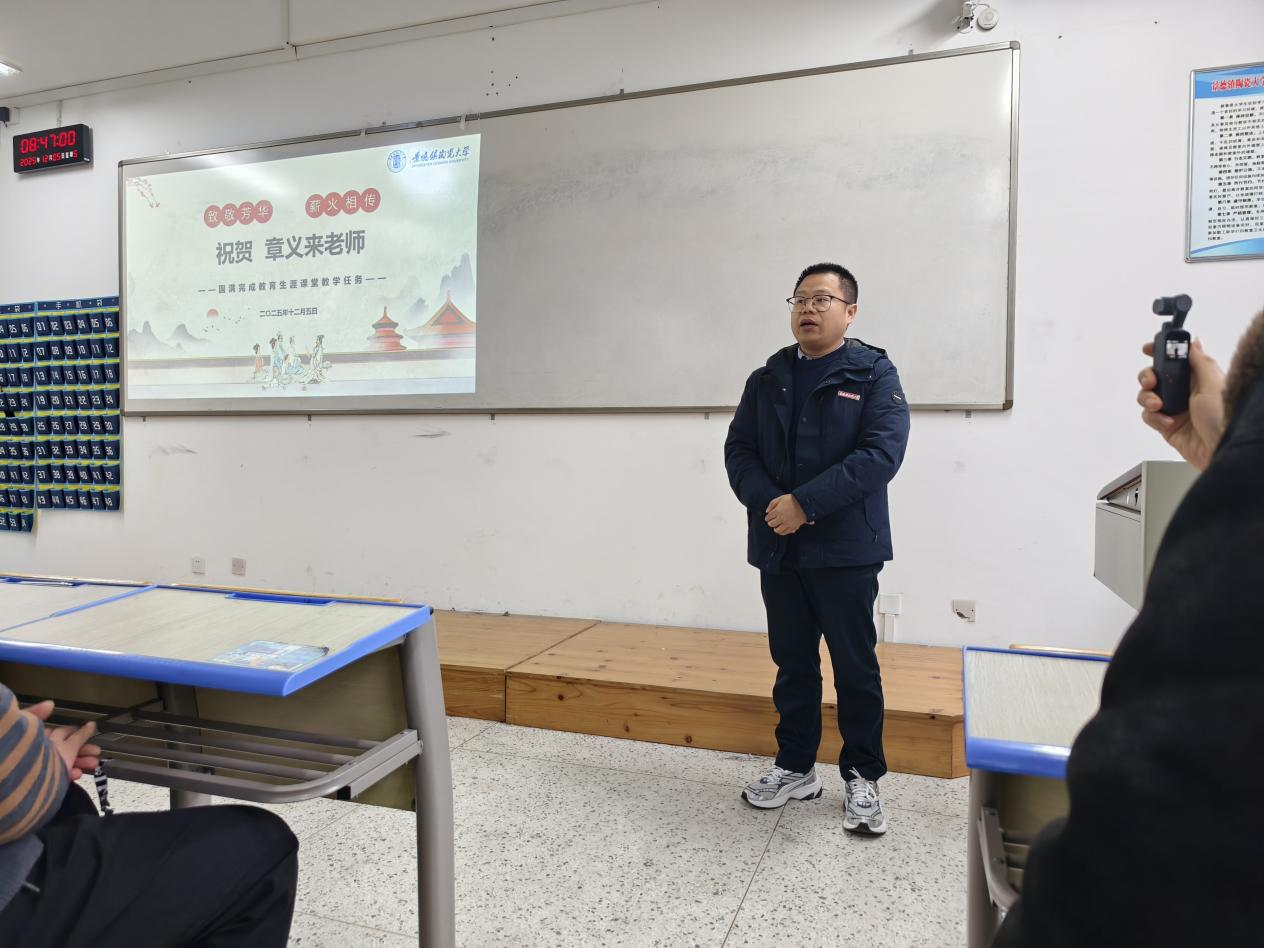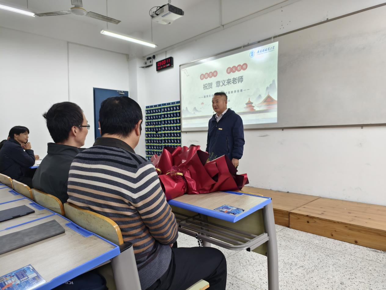 本网讯(信息工程学院 胡开华)12月5日上午,信息工程学院在尚学楼212教室为章义来老师举行杏坛四十载最后一课欢送仪式。学院领导班子成员、教师代表、章义来劳模创新工作室的成员、1998级校友赖俊祚及2025级计科专业1、2班的学生都齐聚教室,共同见证这一充满温情的时刻。